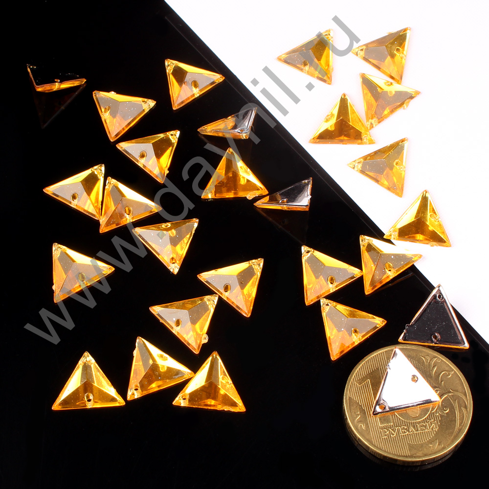 Стразы пришивные акрил "Треугольник" 12 мм 1000 шт ярко золотые 11