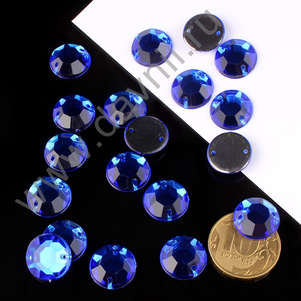 Стразы пришивные акрил "Круг" 20 мм 200 шт синие гранённые 7