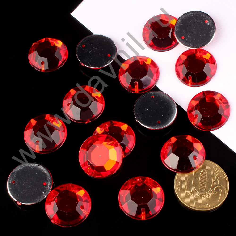 Стразы пришивные акрил "Круг" 20 мм 200 шт красные 12