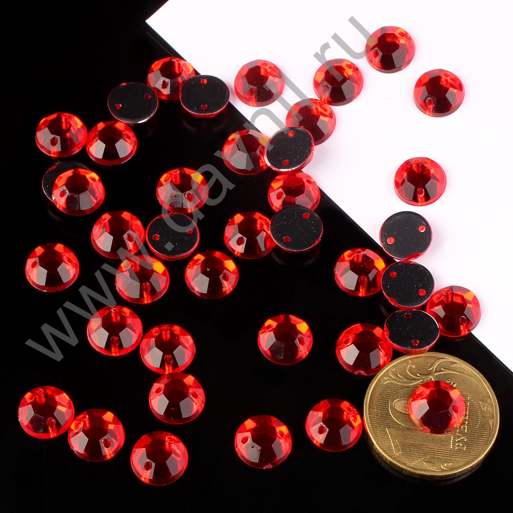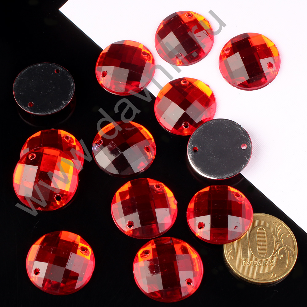 Стразы пришивные акрил "Круг" 18 мм 200 шт красные гранённые 12