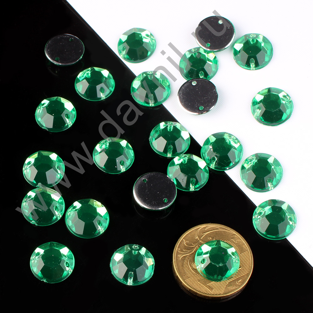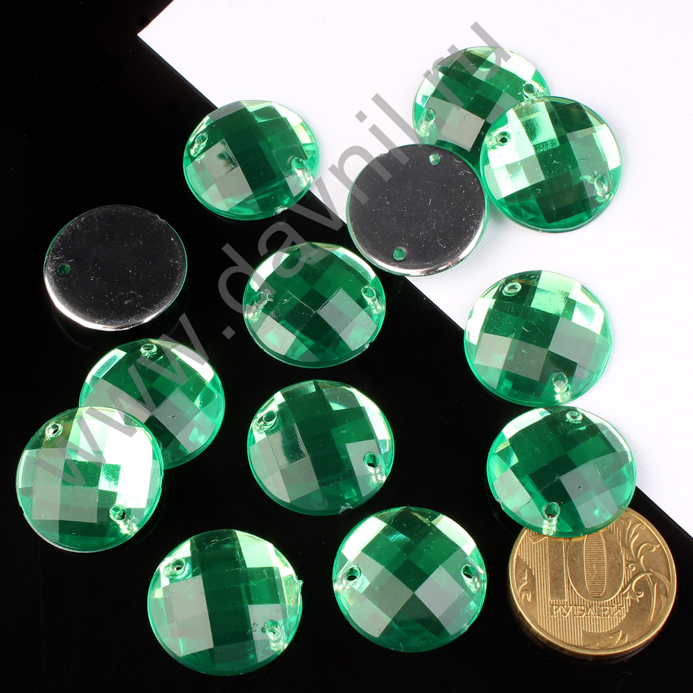 Стразы пришивные акрил "Круг" 20 мм 200 шт зелёные 9