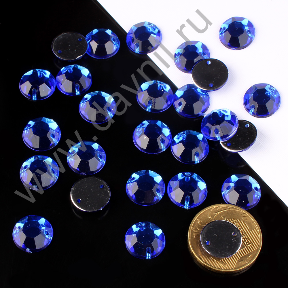 Стразы пришивные акрил "Круг" 12 мм 1000 шт синий восьмигранник 7