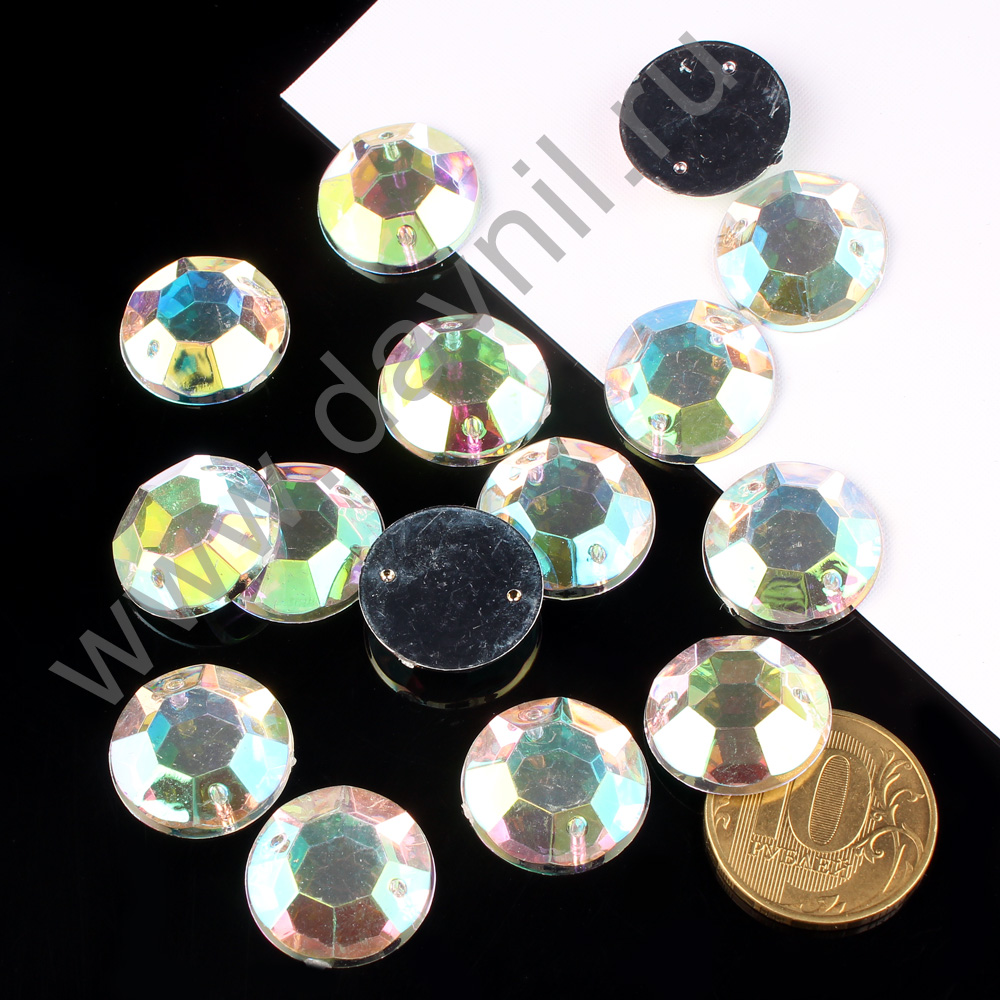 Стразы пришивные акрил "Круг" 18 мм 200 шт серебряные восьмигранник1