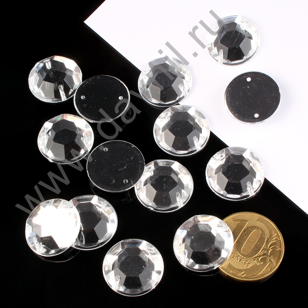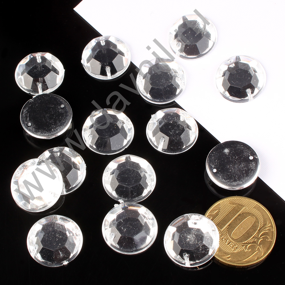Стразы пришивные акрил "Круг" 18 мм 200 шт белые АВ