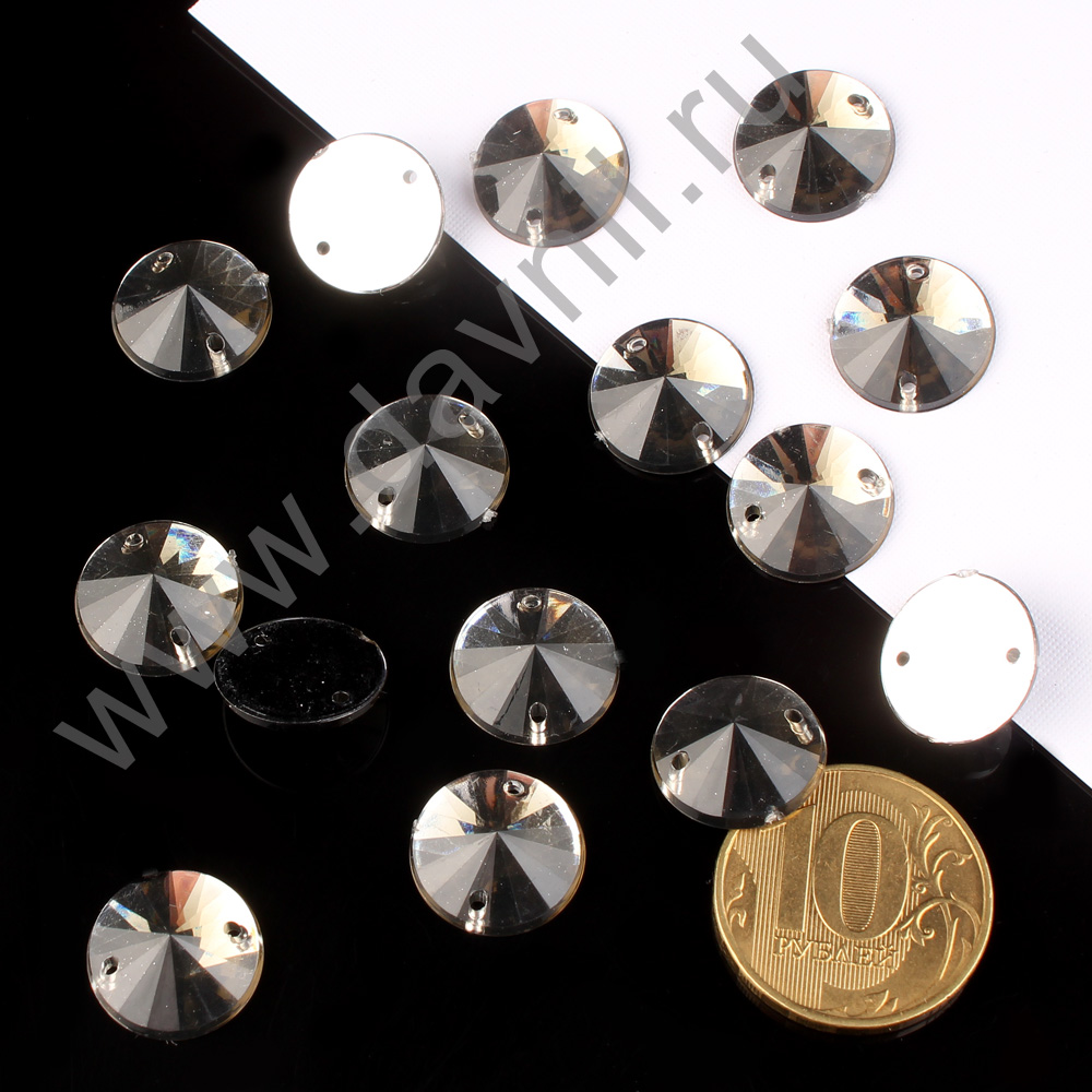 Стразы пришивные акрил "Круг" 16 мм 500 шт серебряный восьмигранник
