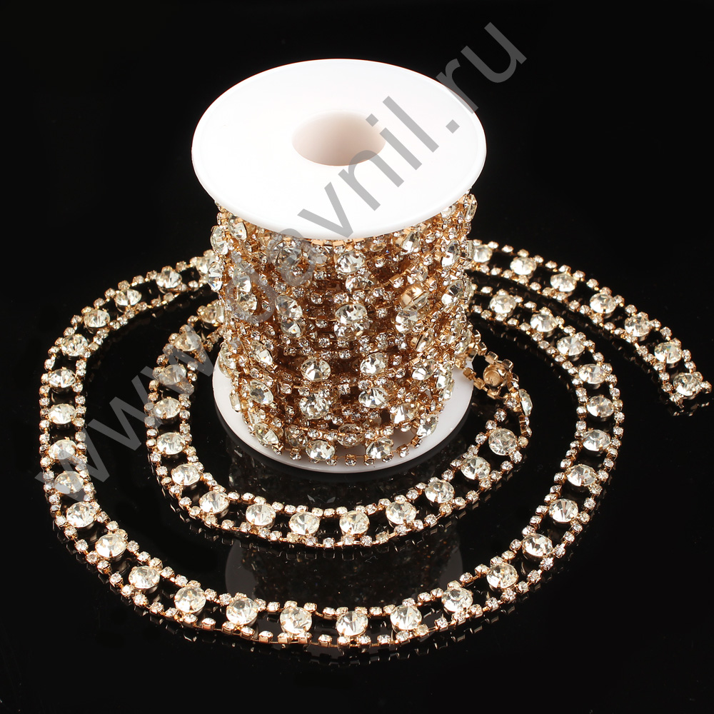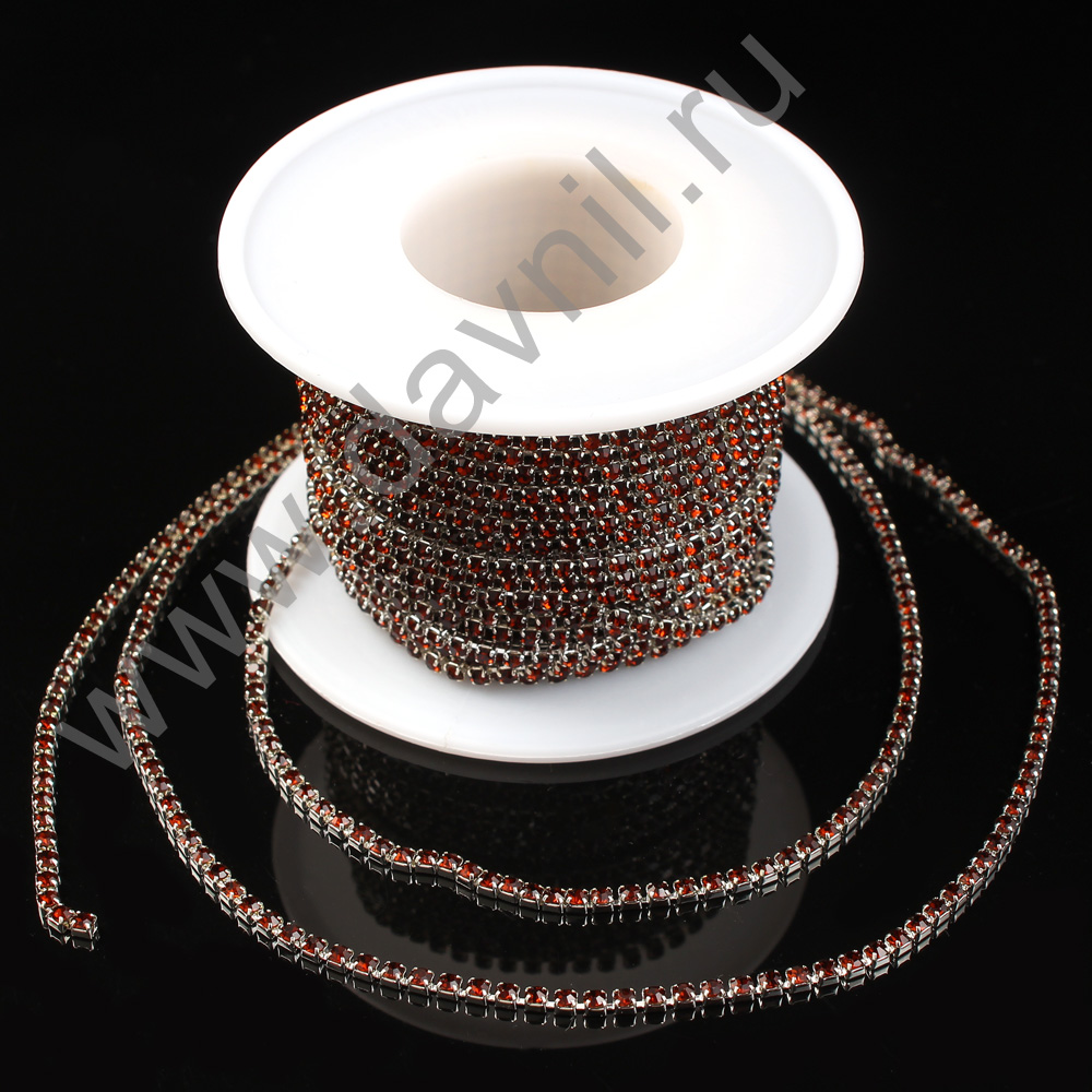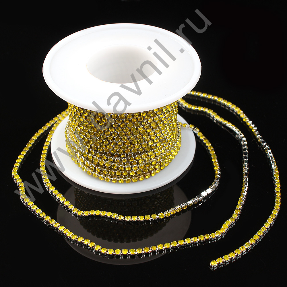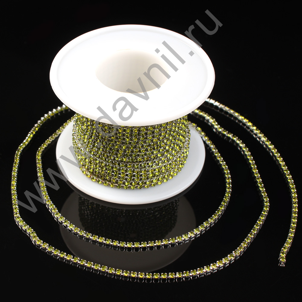 Нить стразовая на бобине стекло 2 мм*10 ярдов SS6 оливковая 24