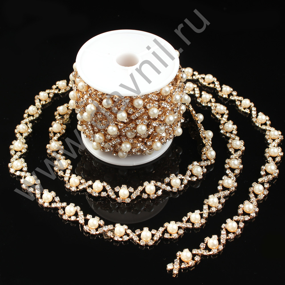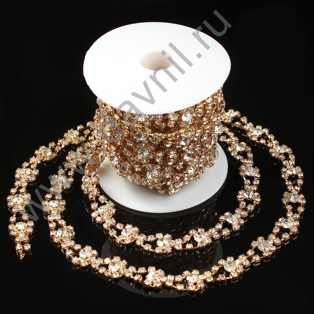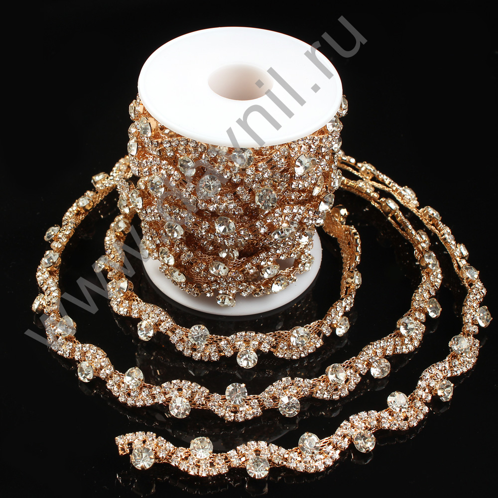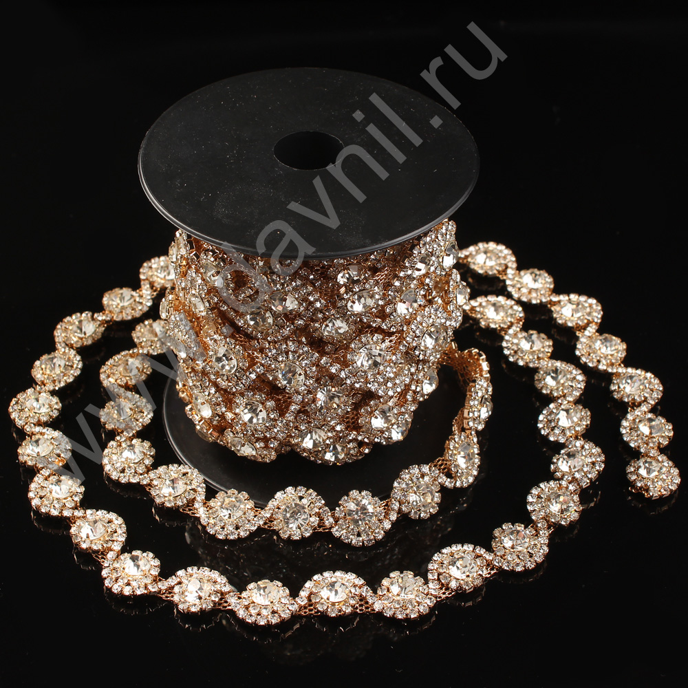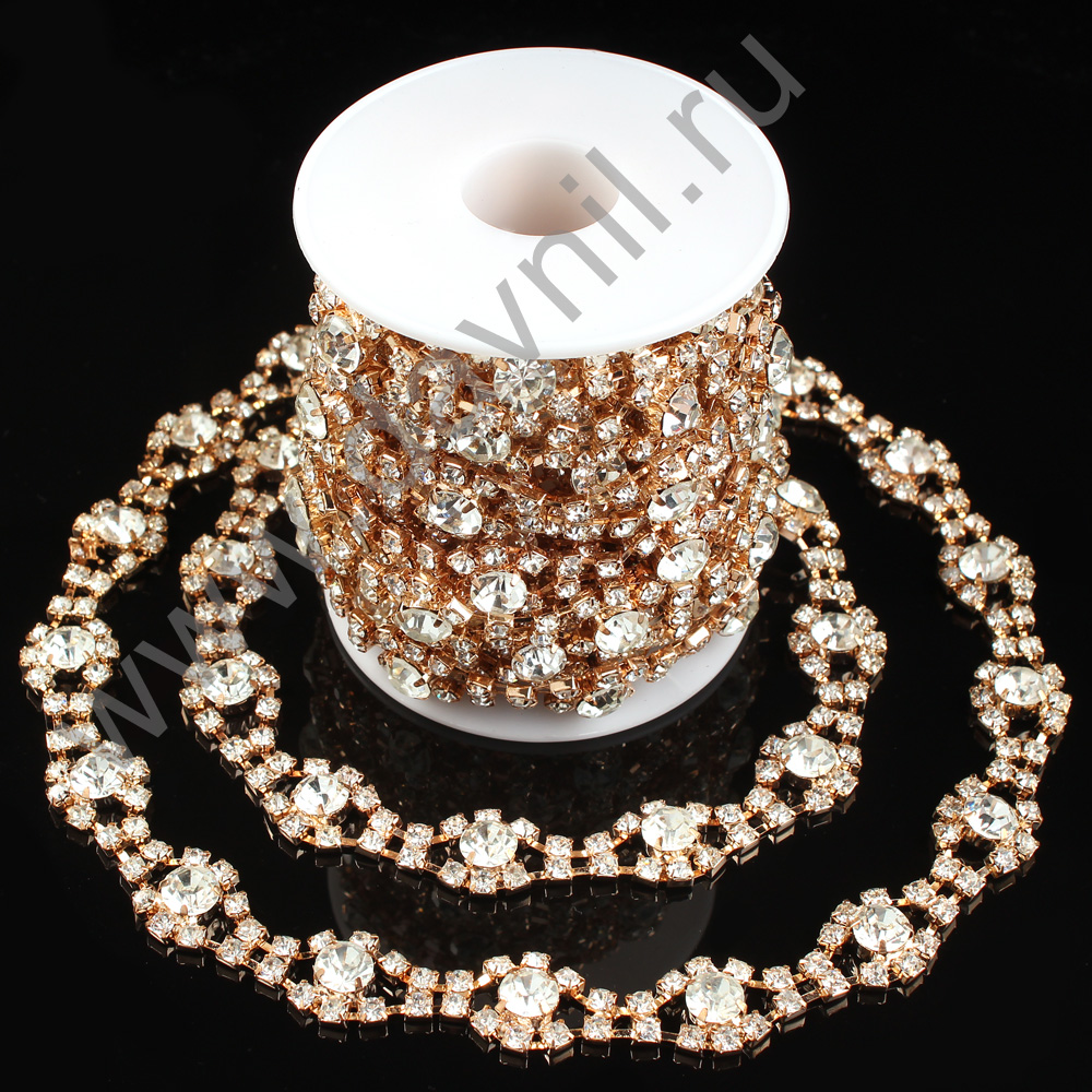 Нить стразовая на бобине стекло 2 мм*10 ярдов SS6 оливковая 24