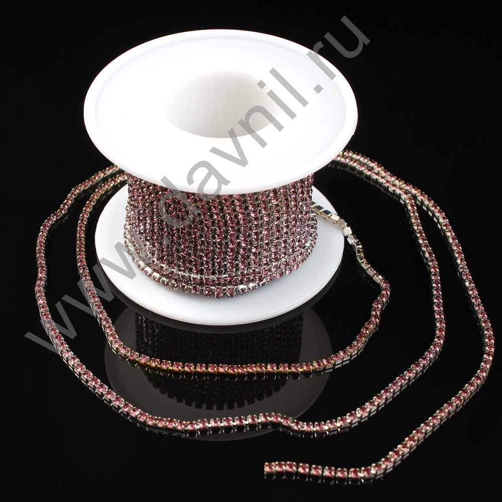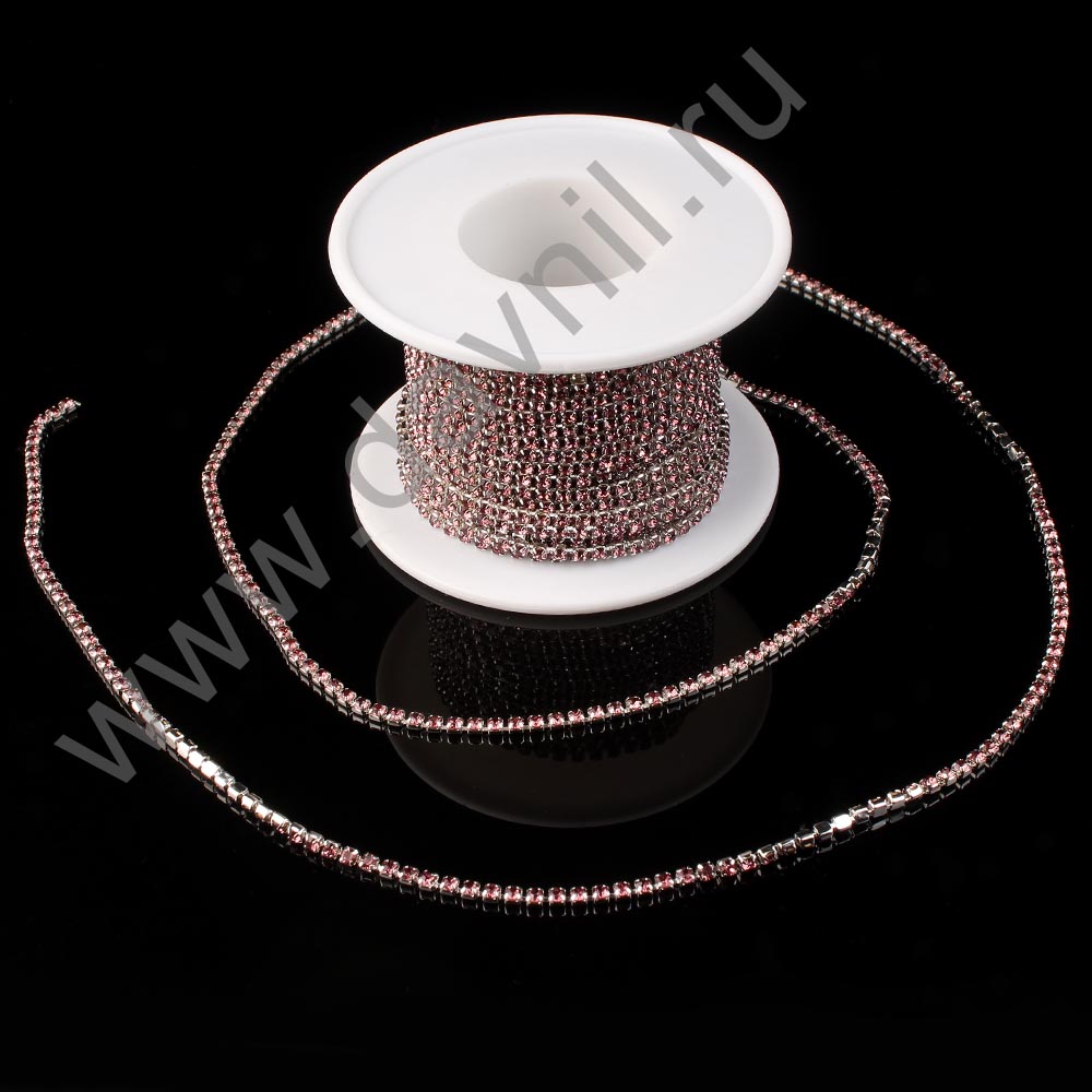 Нить стразовая на бобине стекло 2 мм*10 ярдов SS6 розовая 25
