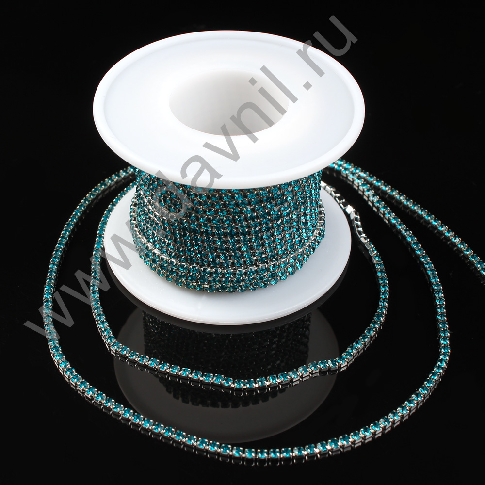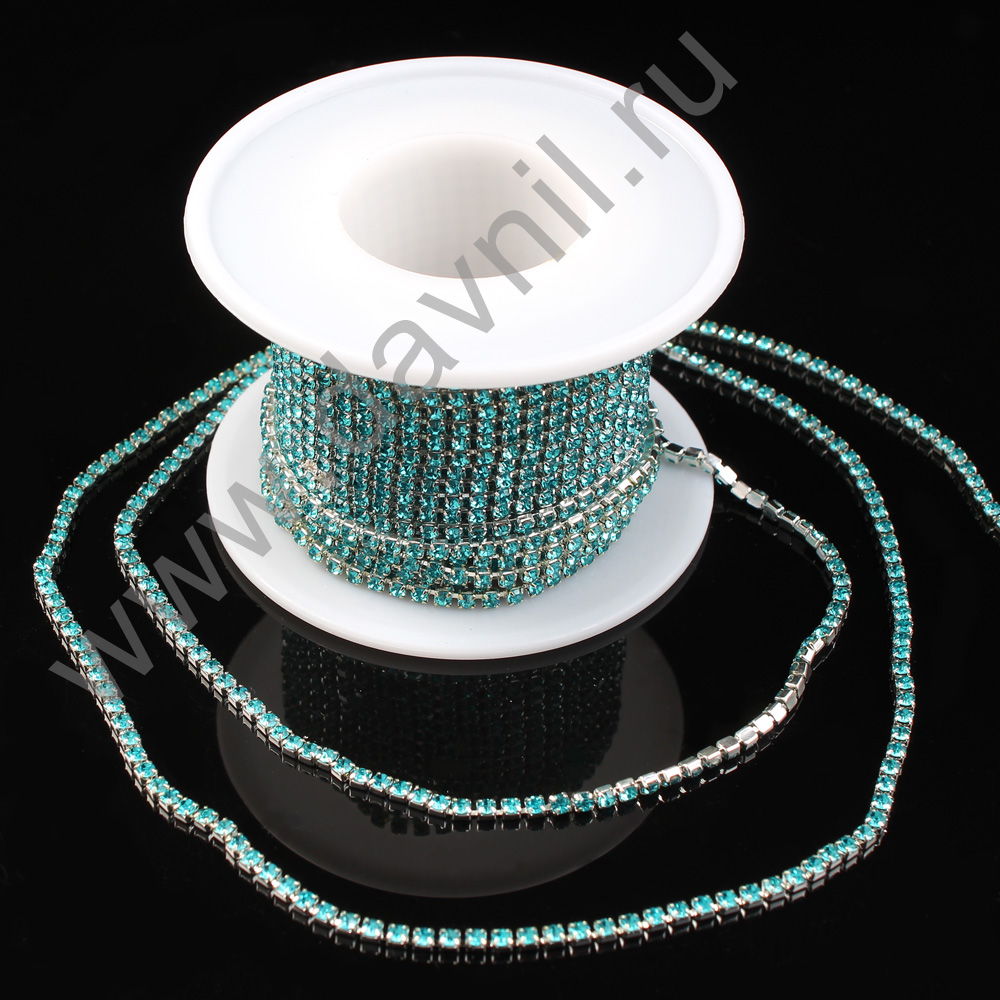Нить стразовая на бобине стекло 2 мм*10 ярдов SS6 голубая 8