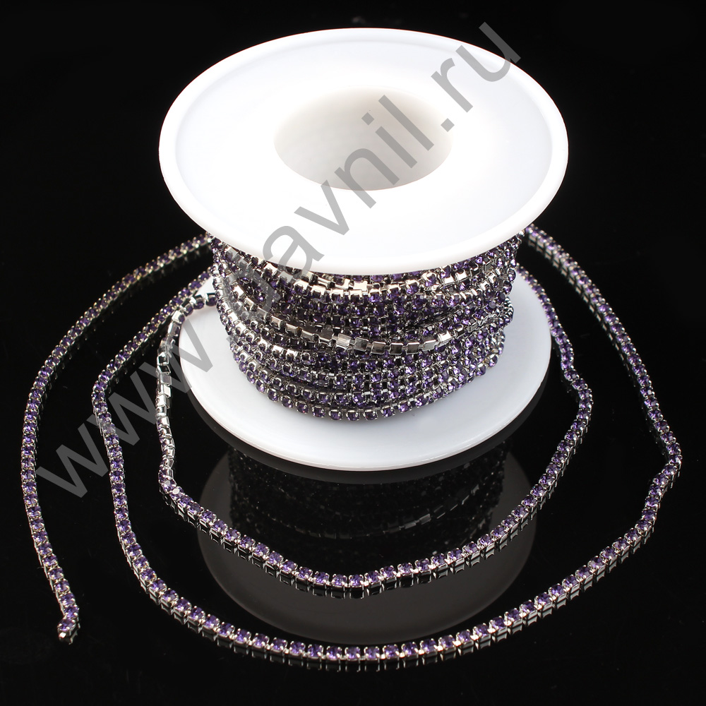 Нить стразовая на бобине стекло 2 мм*10 ярдов SS6 фиолетово лиловая 21