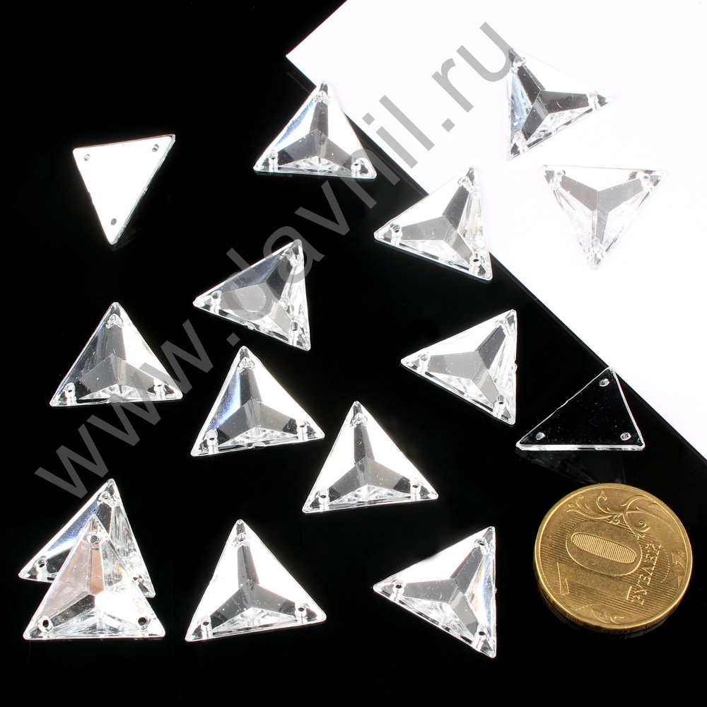 Стразы пришивные акрил "Треугольник" 19 мм 500 шт серебряные 1