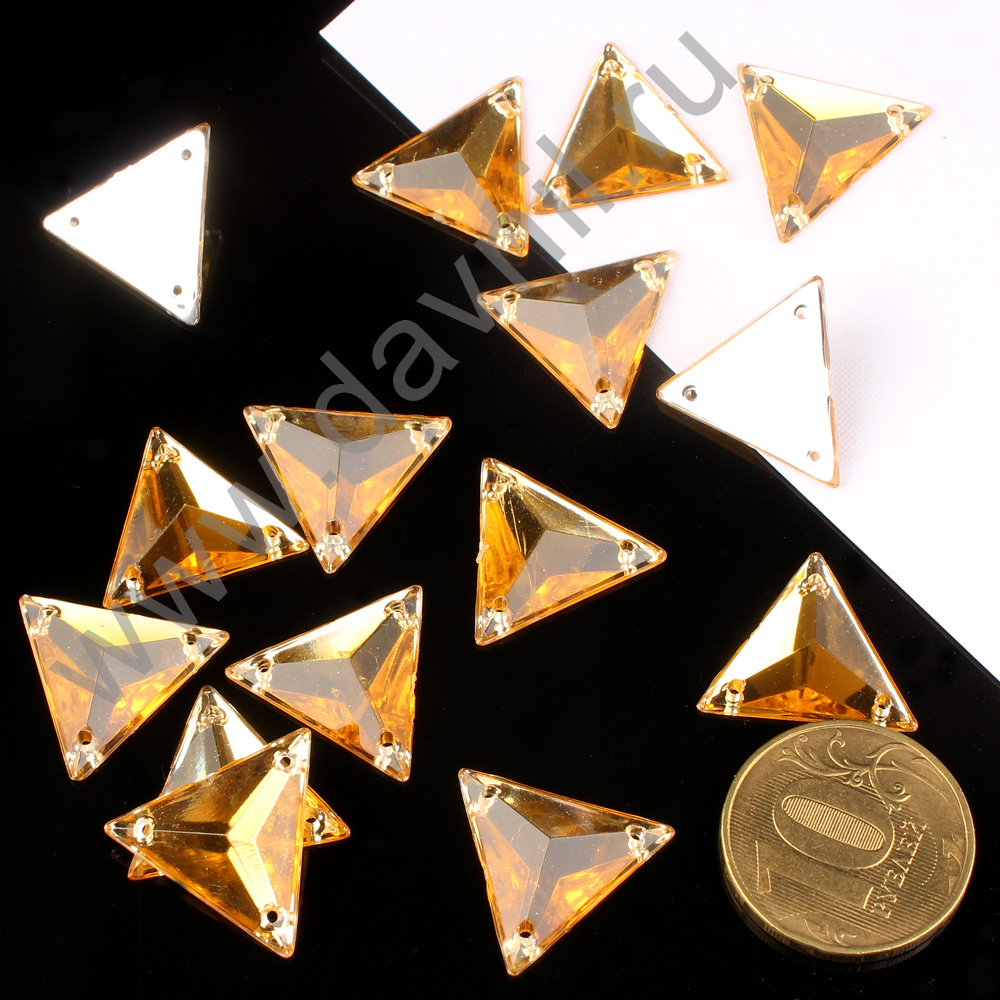 Стразы пришивные акрил "Треугольник" 19 мм 100 шт ярко золотые 21