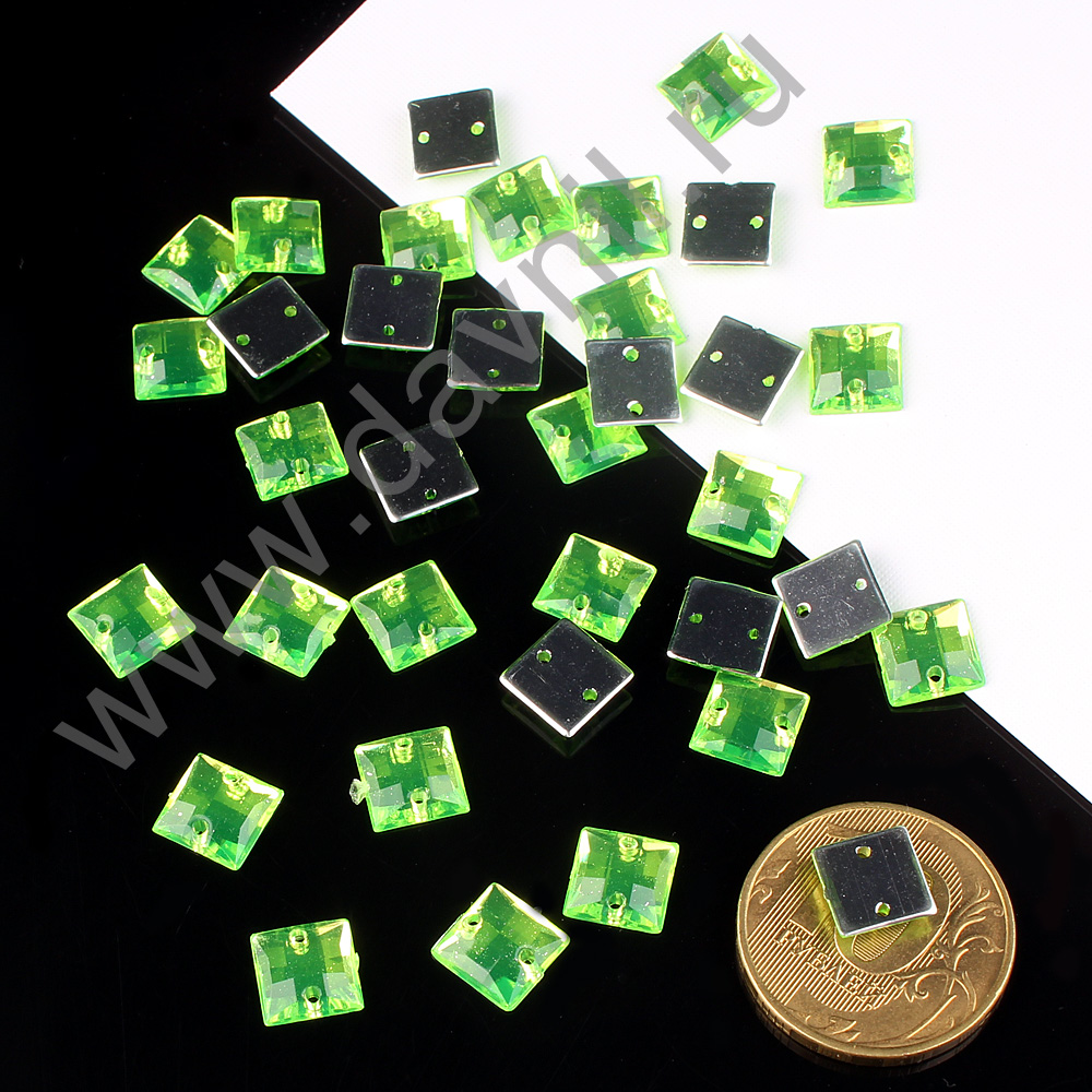 Стразы пришивные акрил "Квадрат" 8 мм 2000 шт салатовые 33