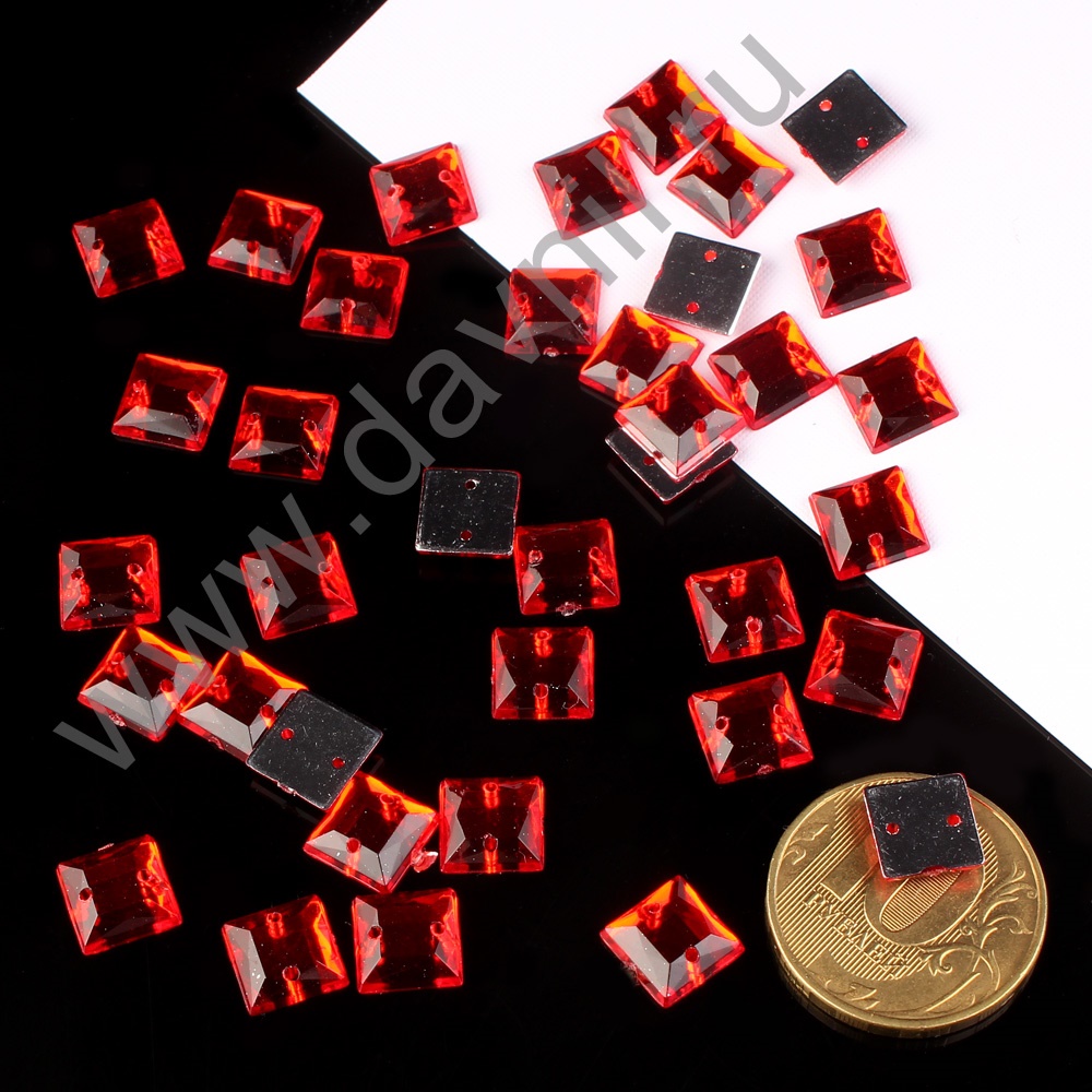 Стразы пришивные акрил "Квадрат" 10 мм 2000 шт красные 6