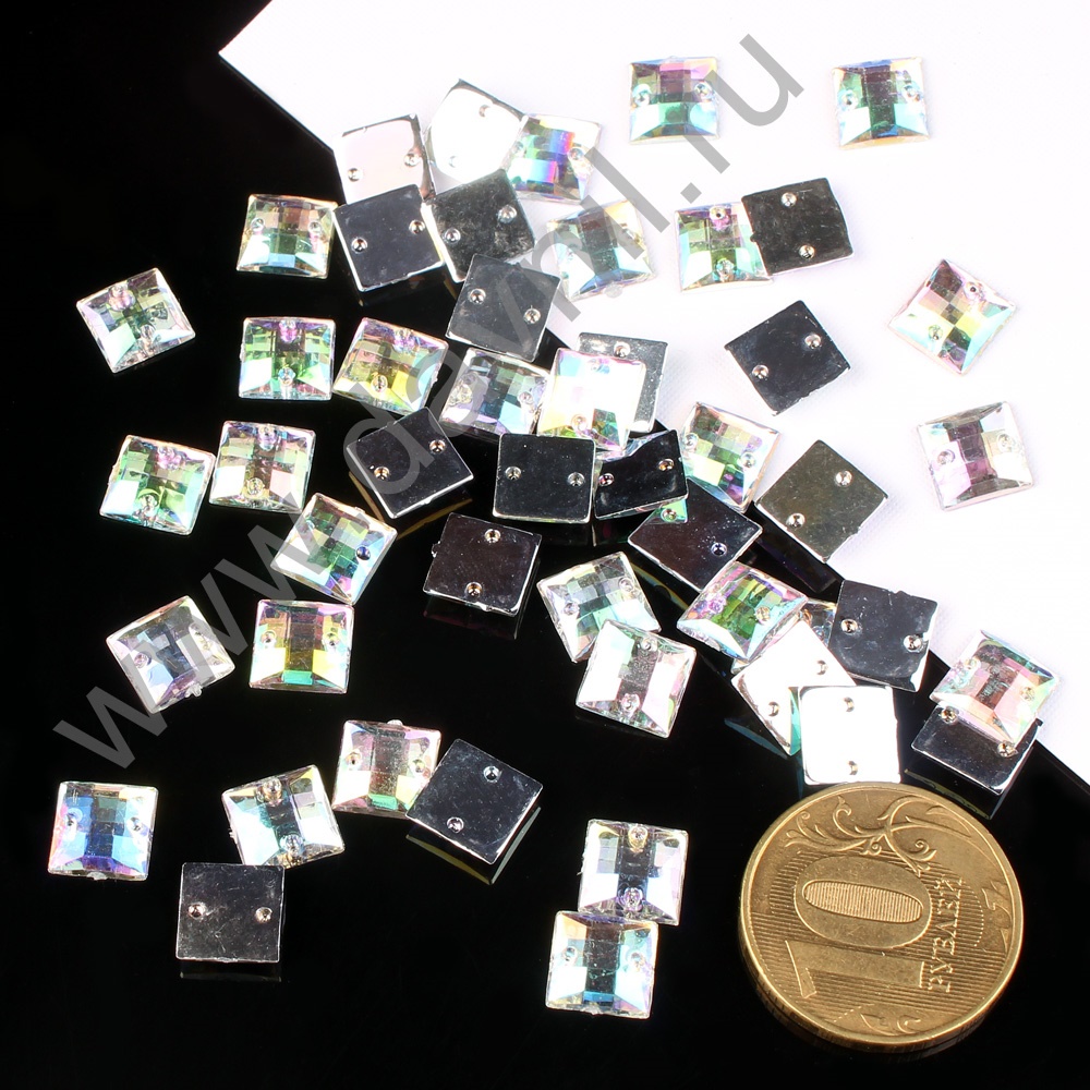 Стразы пришивные акрил "Квадрат" 10 мм 1000 шт белые АВ 1