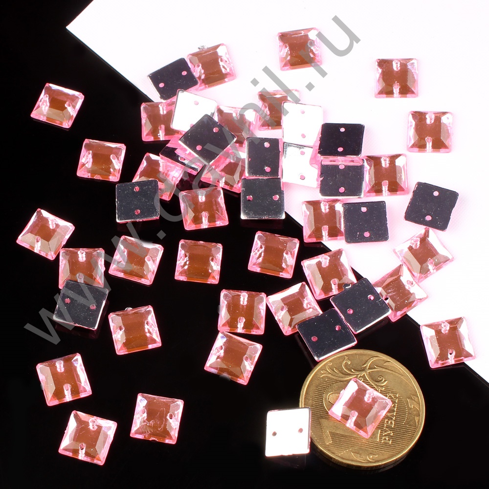 Стразы пришивные акрил "Квадрат" 20 мм 200 шт розовые 3