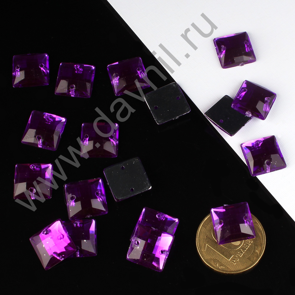 Стразы пришивные акрил "Квадрат" 12 мм 1000 шт фиолетовые