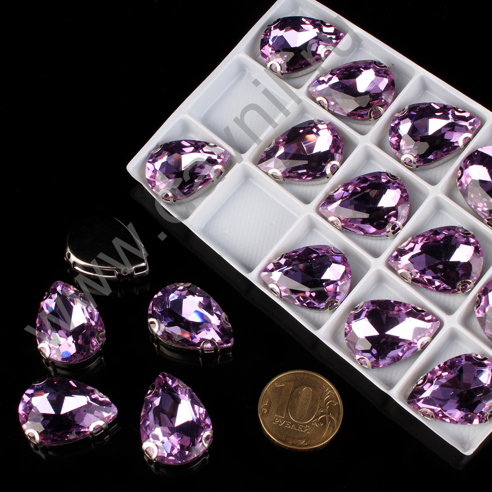 Стразы пришивные в цапах стекло капля 18*25 мм 15 шт сиреневые 22
