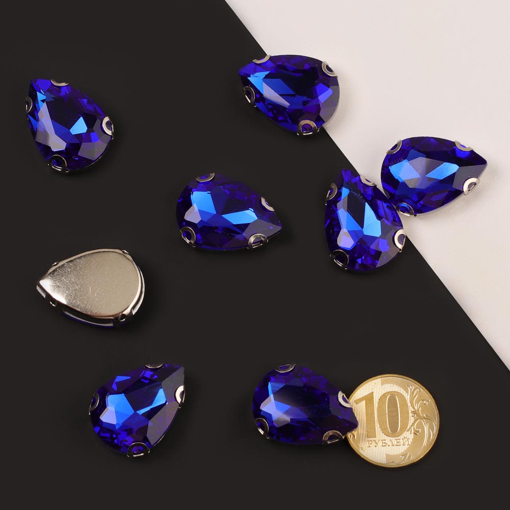 Стразы пришивные в цапах стекло капля 18*25 мм 15 шт синие 9