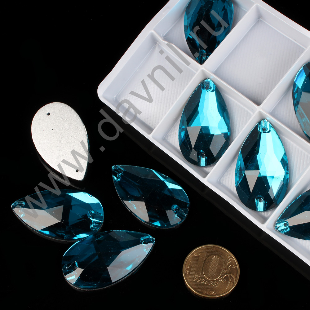 Стразы пришивные стекло капля 22*38 мм 8 шт бирюзовые 23