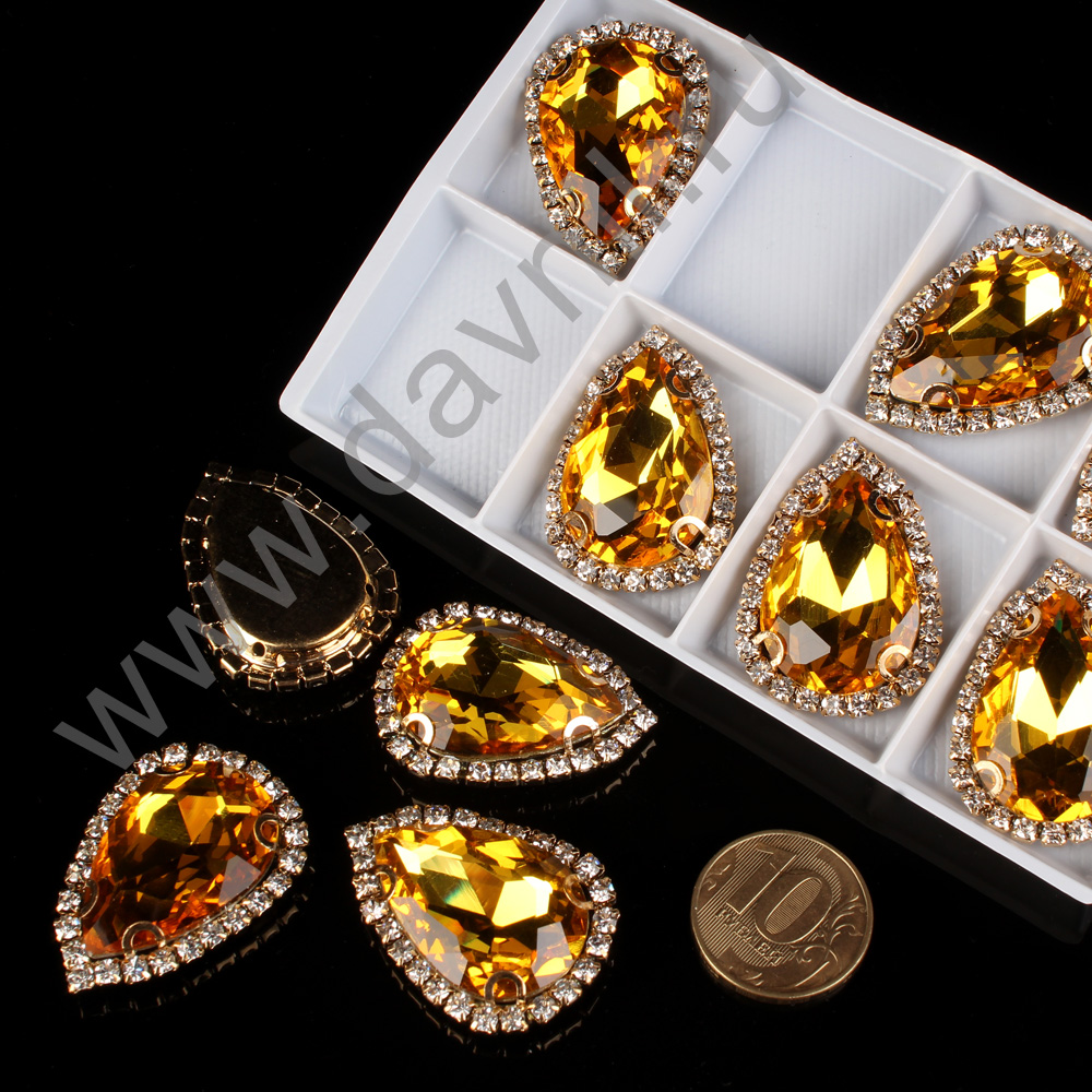 Стразы пришивные в цапах со стразами стекло капля 20*30 мм 8 шт желтые 4