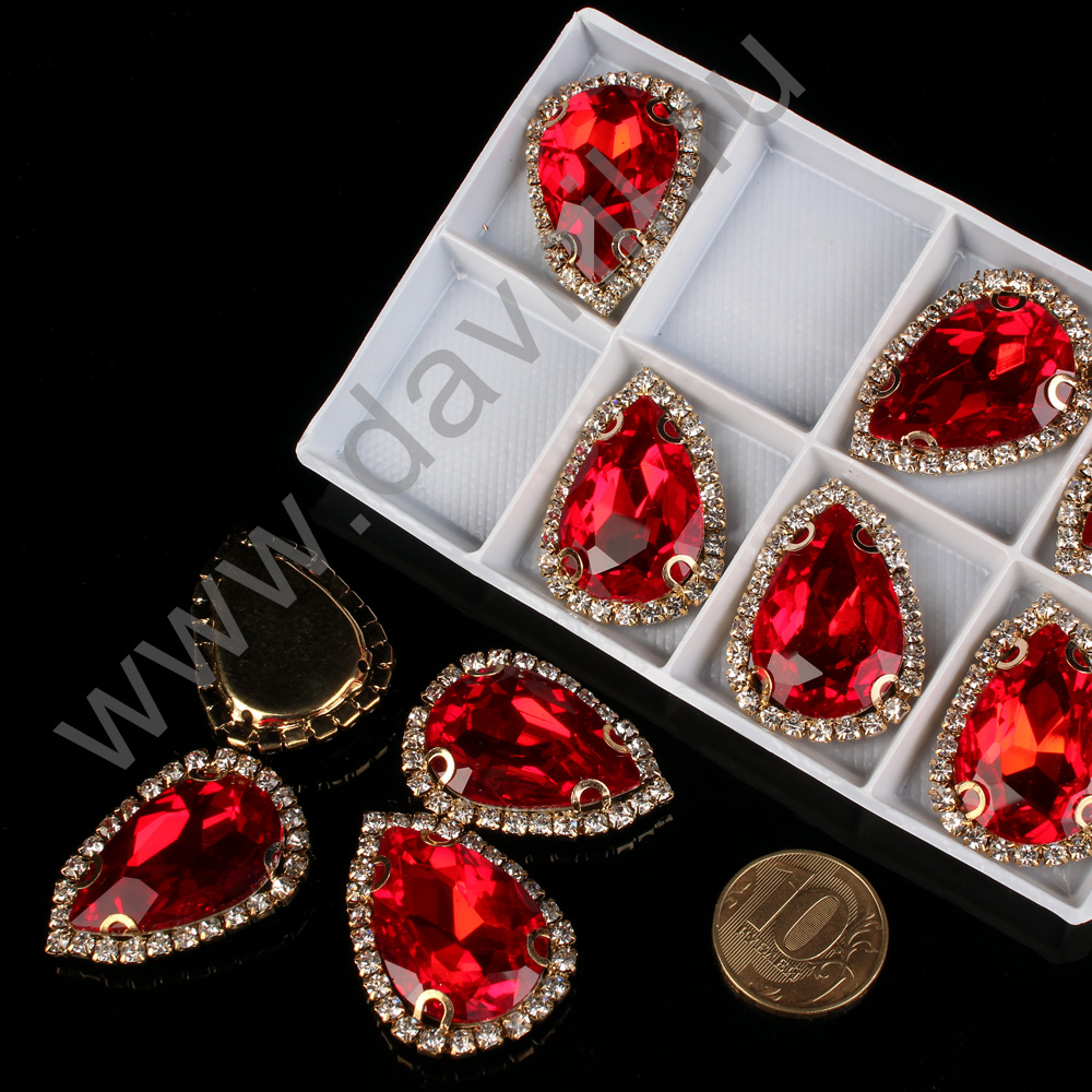 Стразы пришивные в цапах со стразами стекло капля 20*30 мм 8 шт красные 3