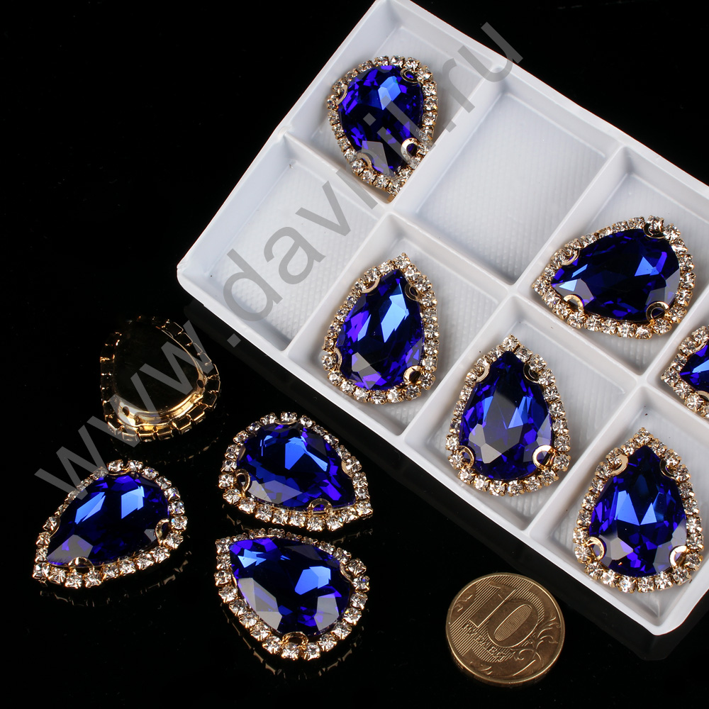 Стразы пришивные в цапах со стразами стекло капля 18*25 мм 8 шт синие 9