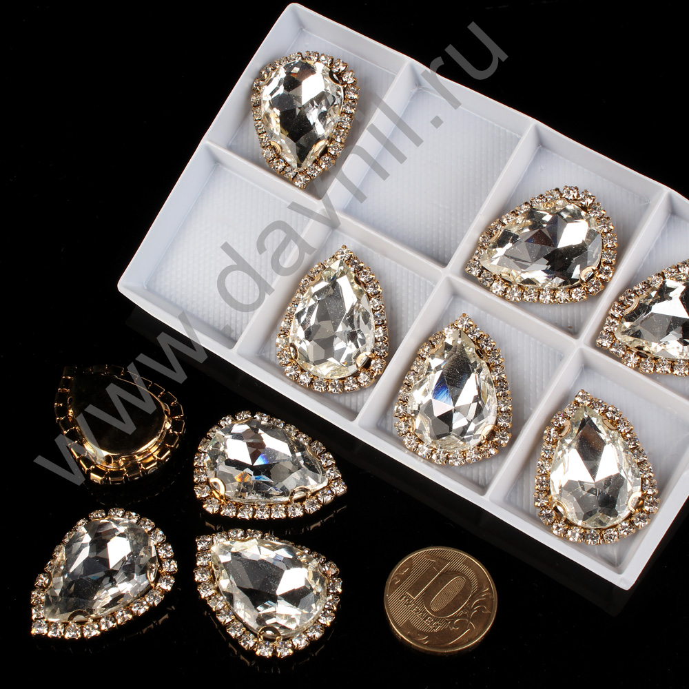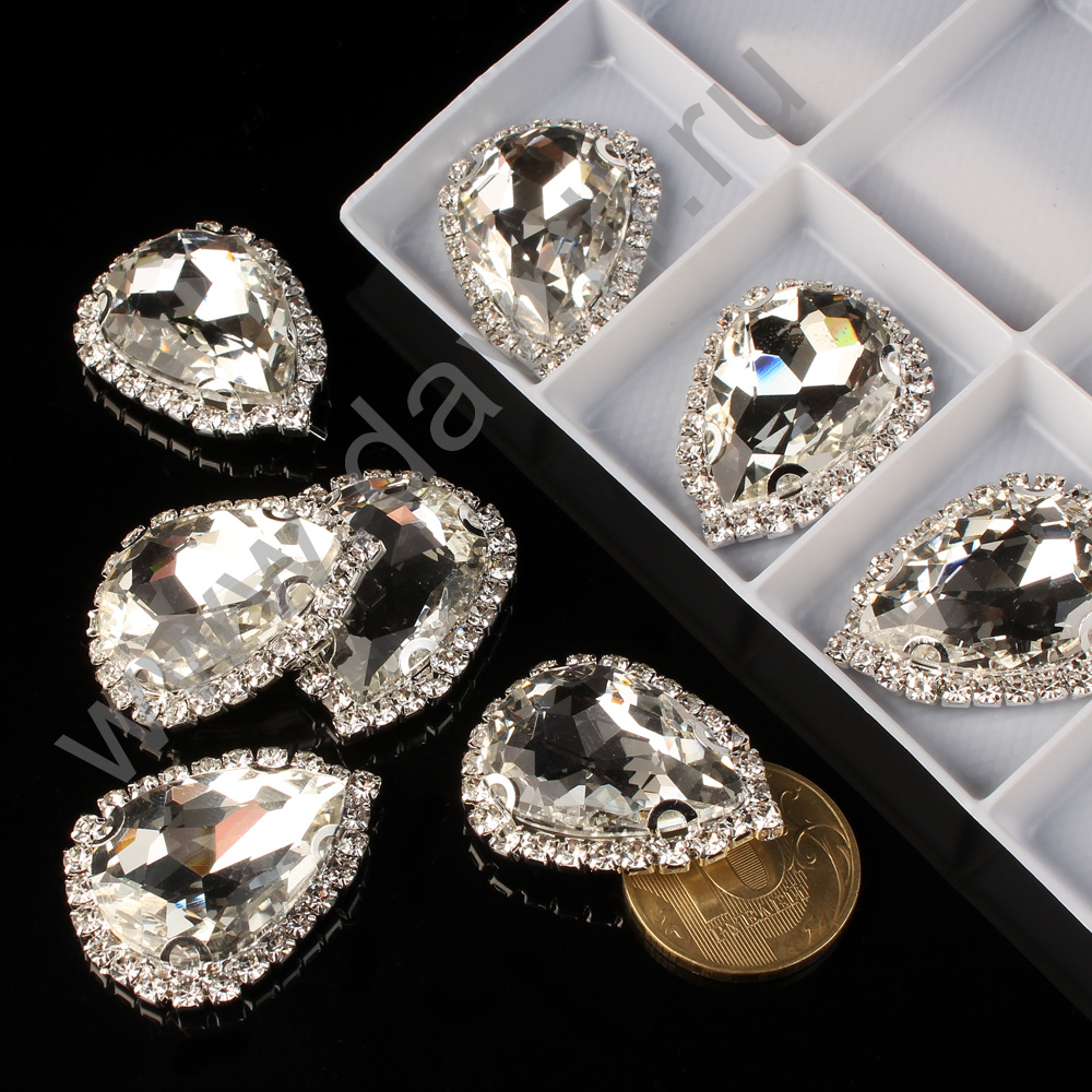 Стразы пришивные в цапах со стразами стекло капля 18*25 мм 8 шт белые 1