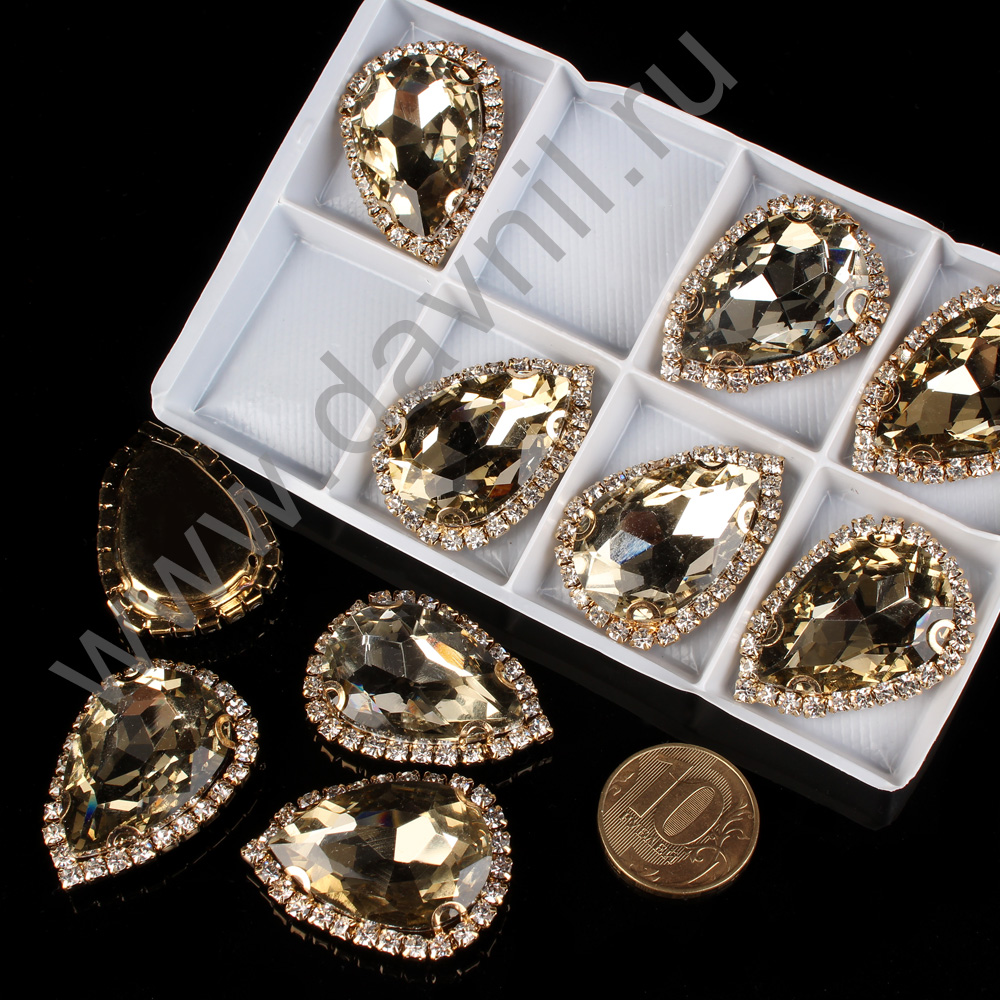 Стразы пришивные стекло капля 17*28 мм 15 шт золото 28