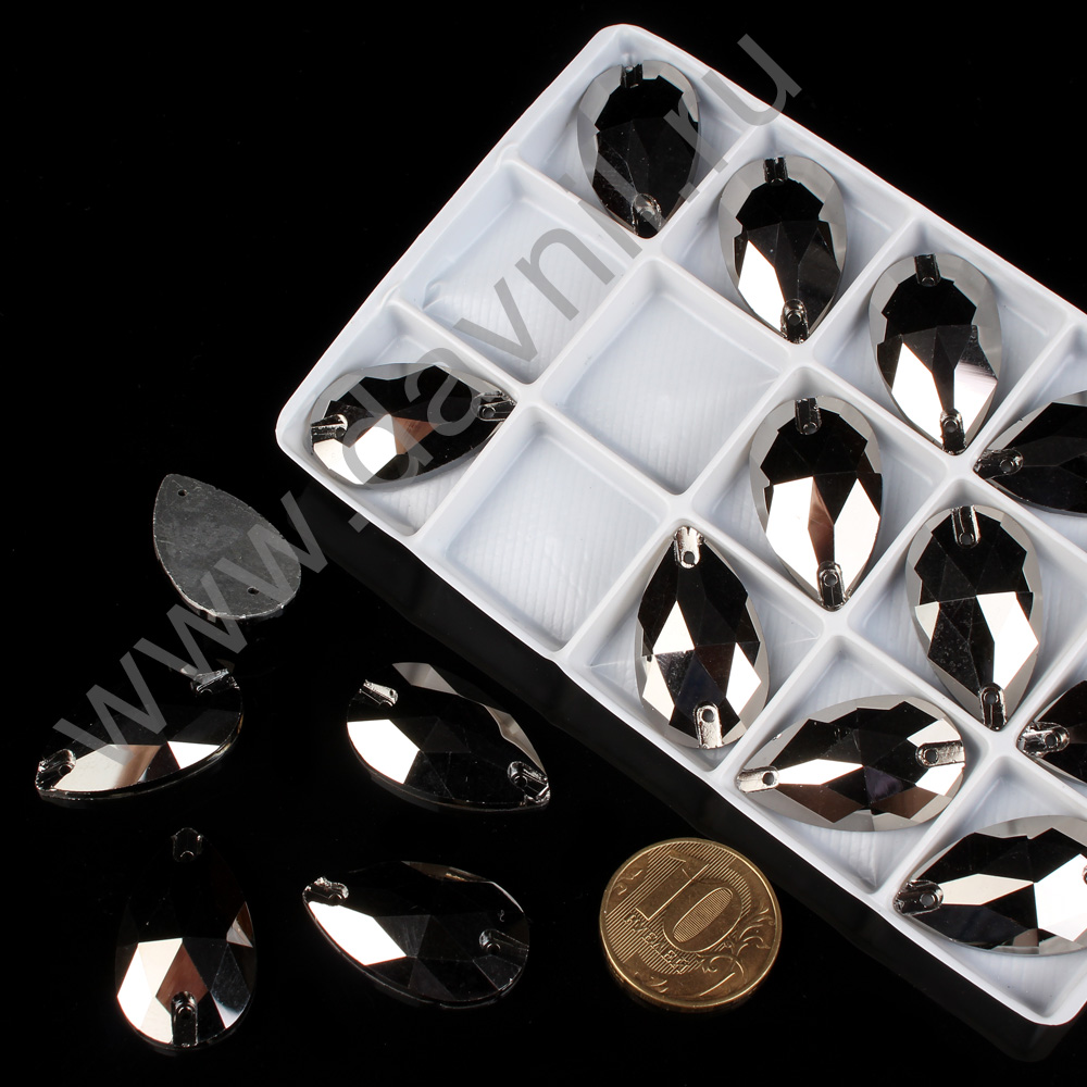 Стразы пришивные стекло капля 17*28 мм 15 шт серебро 29
