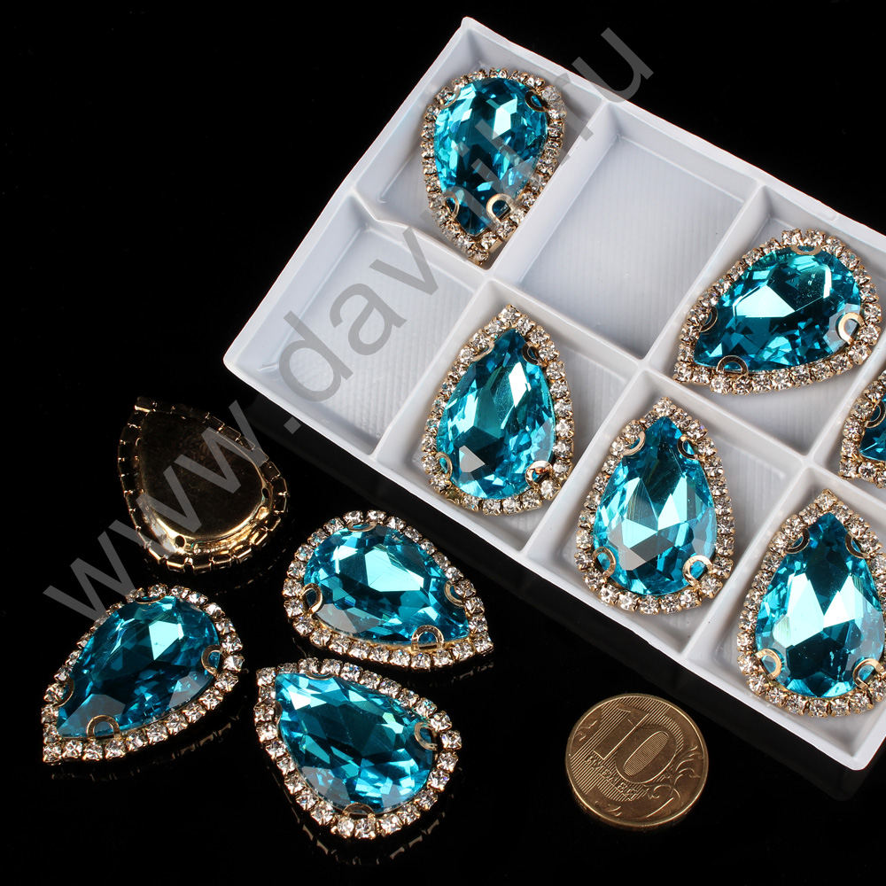 Стразы пришивные в цапах со стразами стекло капля 20*30 мм 8 шт бирюзовые 10