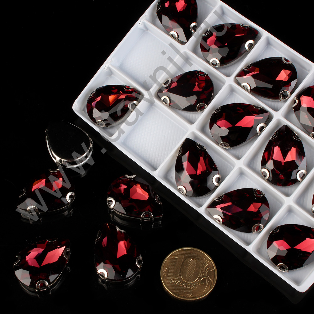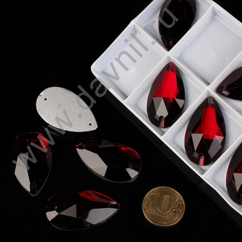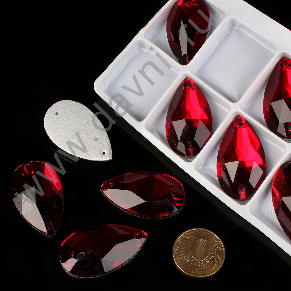 Стразы пришивные стекло капля 22*38 мм 8 шт красные 2