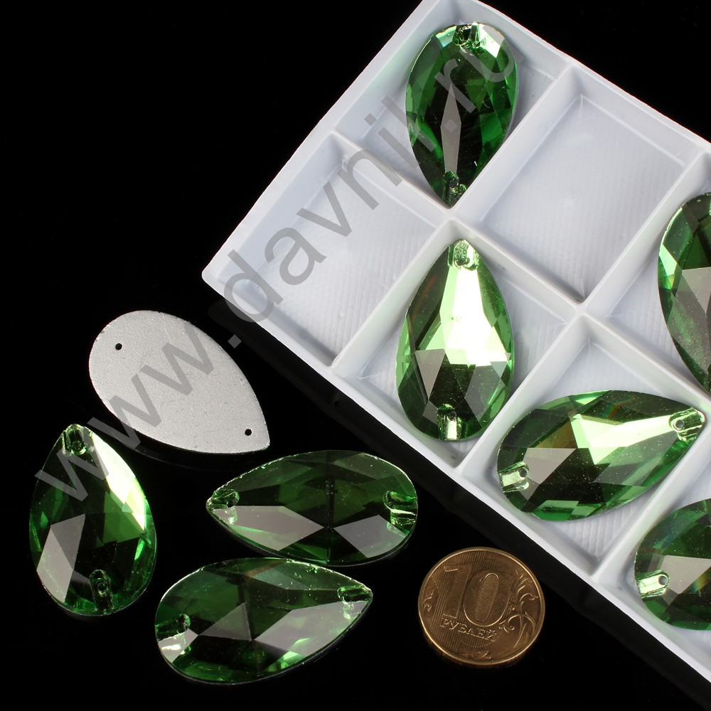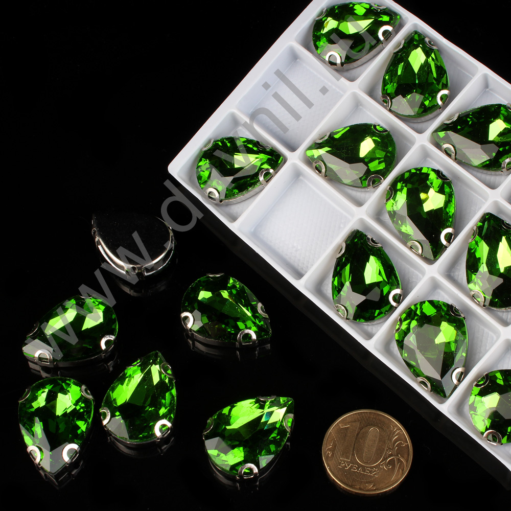 Стразы пришивные в цапах стекло капля 18*25 мм 15 шт зеленые 5