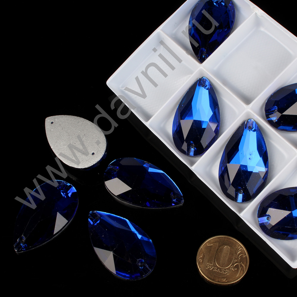 Стразы пришивные в цапах стекло капля 18*25 мм 15 шт синие 9