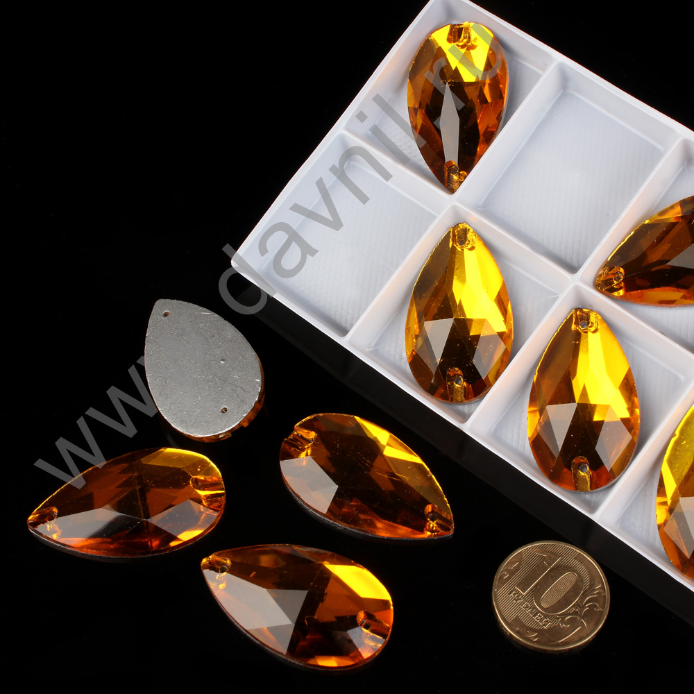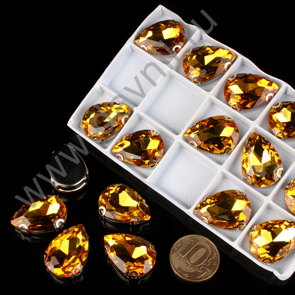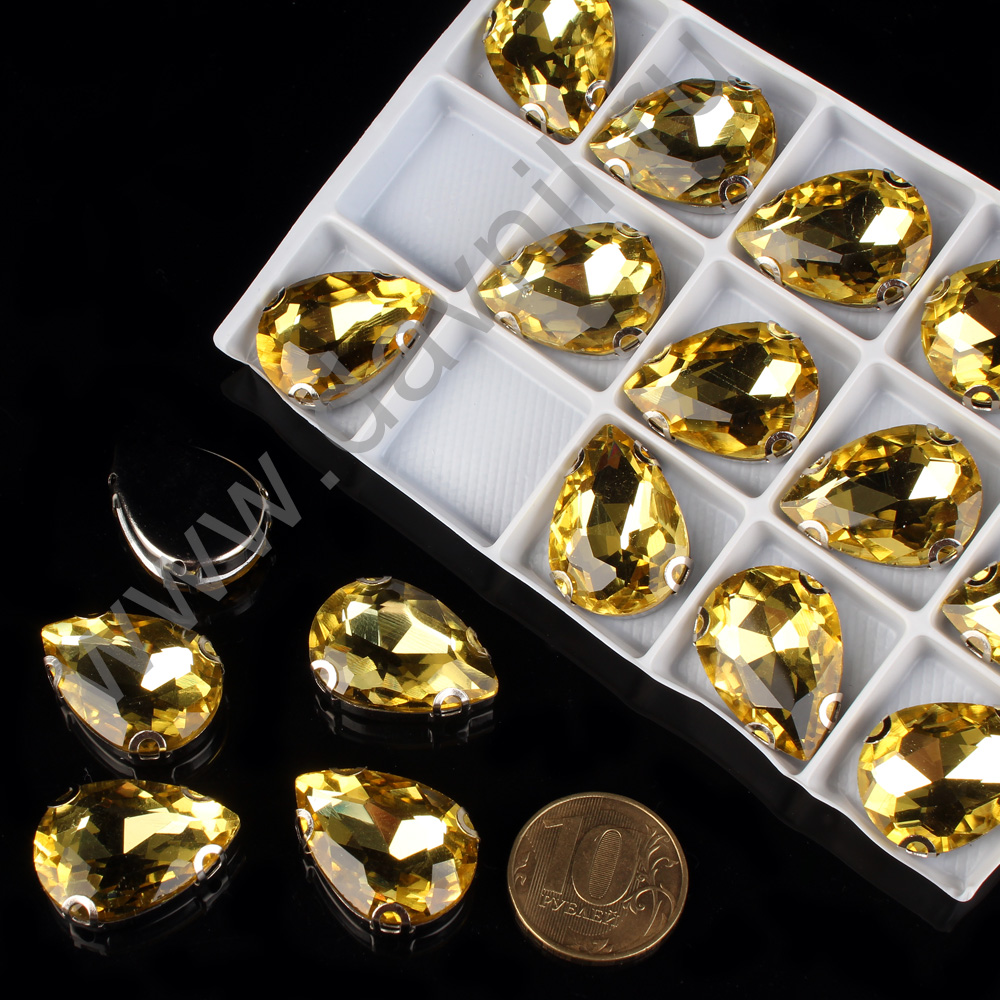Стразы пришивные в цапах стекло капля 18*25 мм 15 шт желтые 4