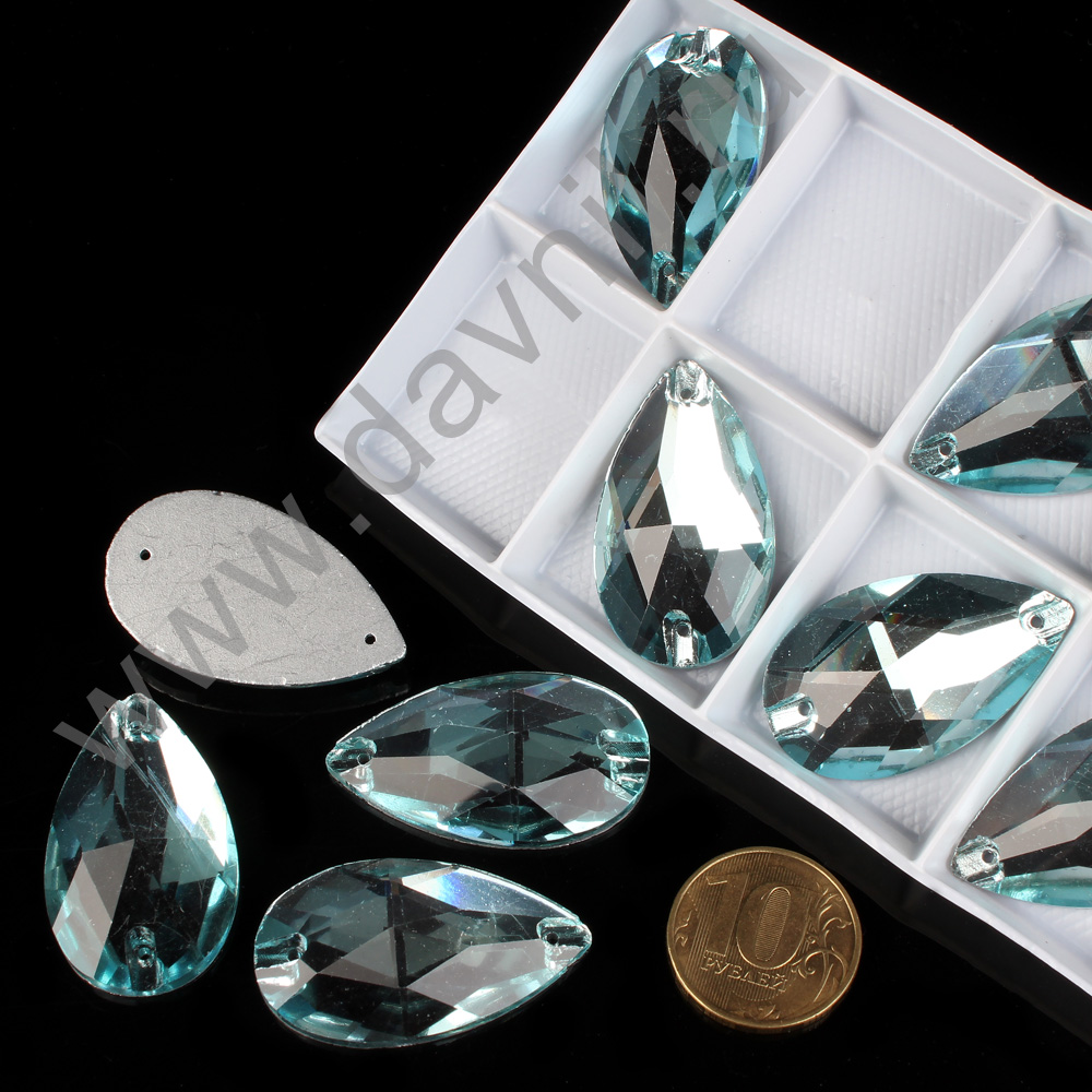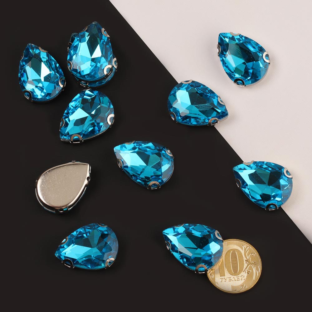 Стразы пришивные в цапах стекло капля 18*25 мм 15 шт бирюзовые 10