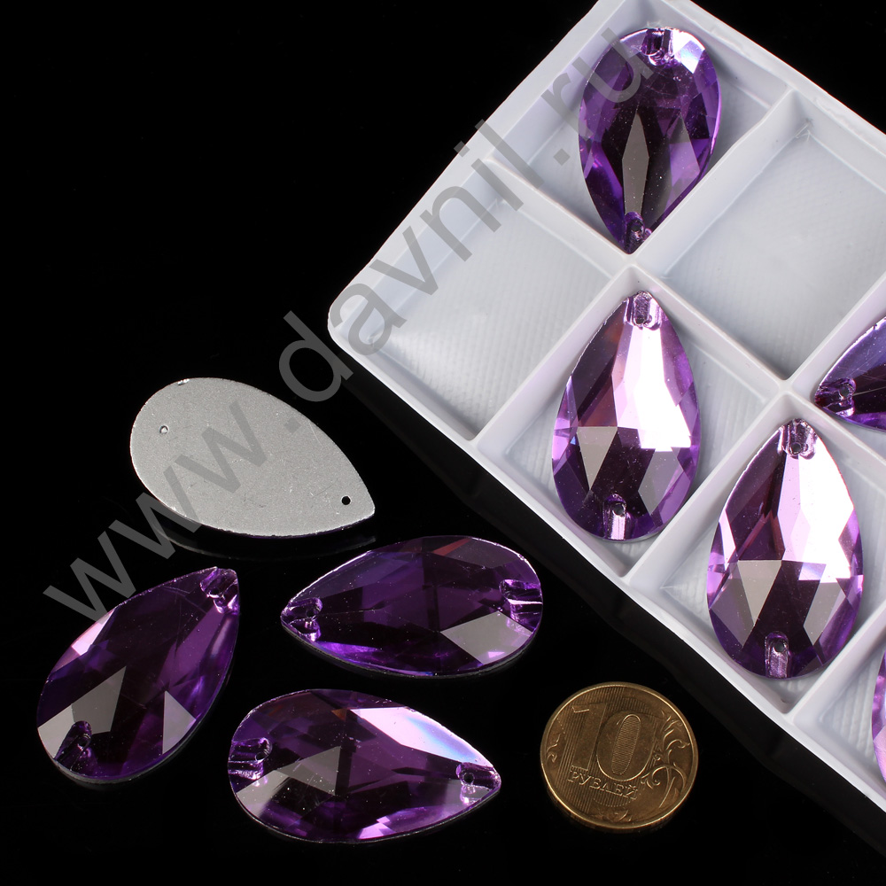 Стразы пришивные стекло капля 22*38 мм 8 шт лиловые 4