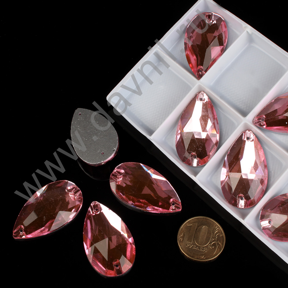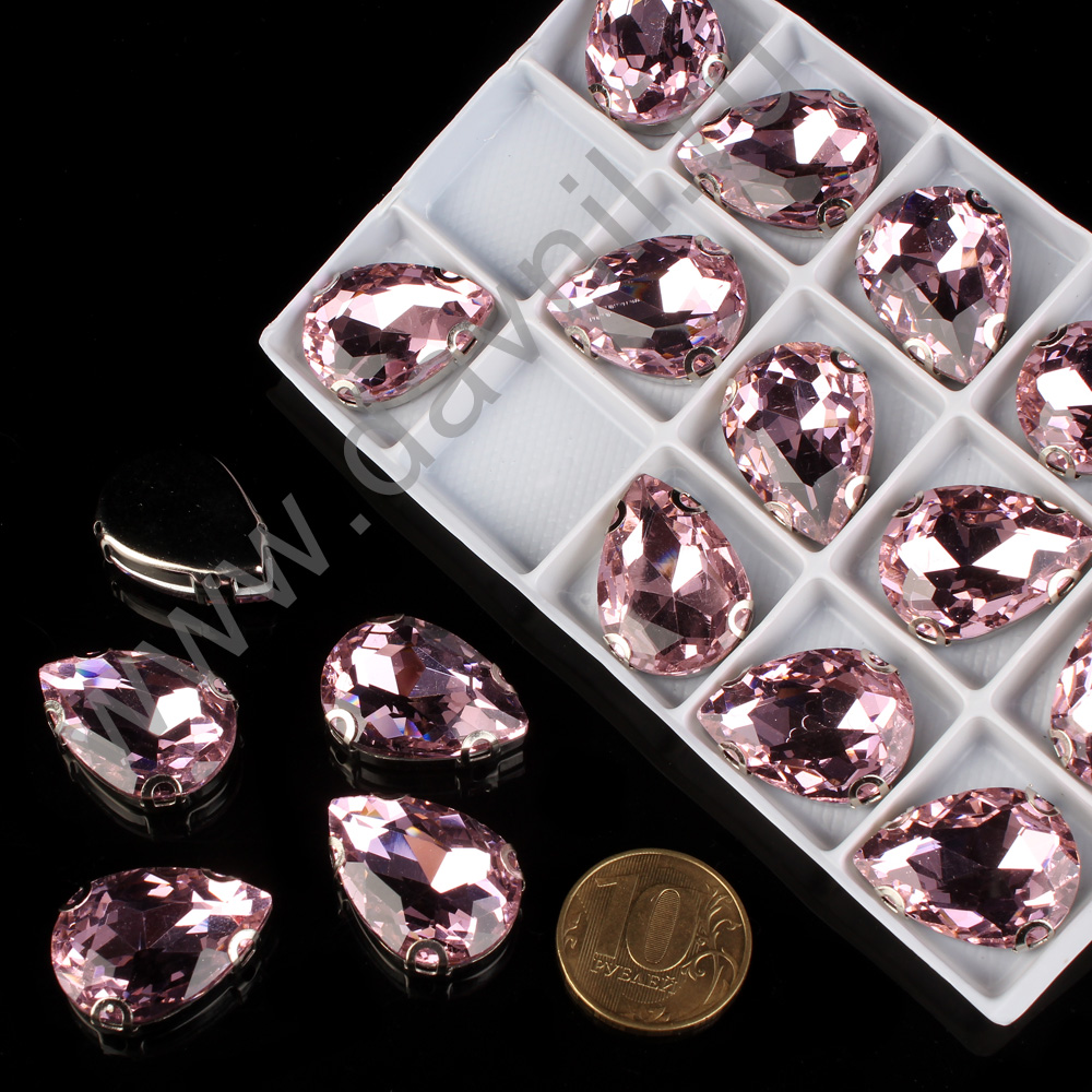 Стразы пришивные в цапах стекло капля 18*25 мм 15 шт розовые 6