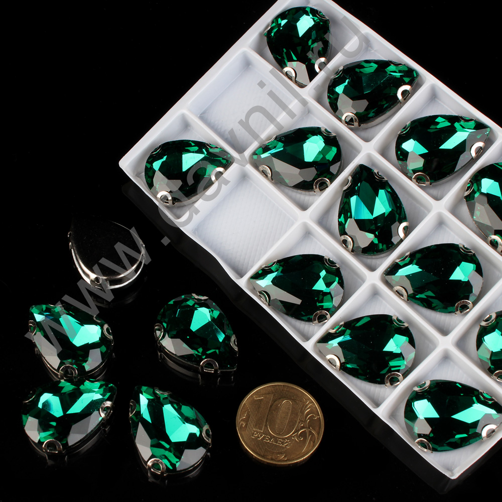 Стразы пришивные в цапах стекло капля 18*25 мм 15 шт изумрудные 18