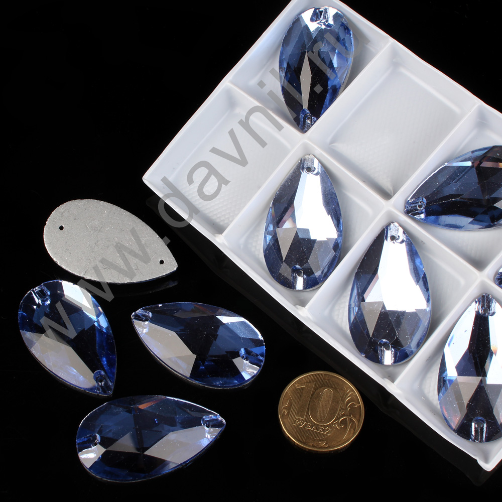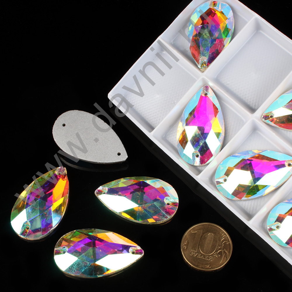 Стразы пришивные стекло капля 22*38 мм 8 шт белые АВ