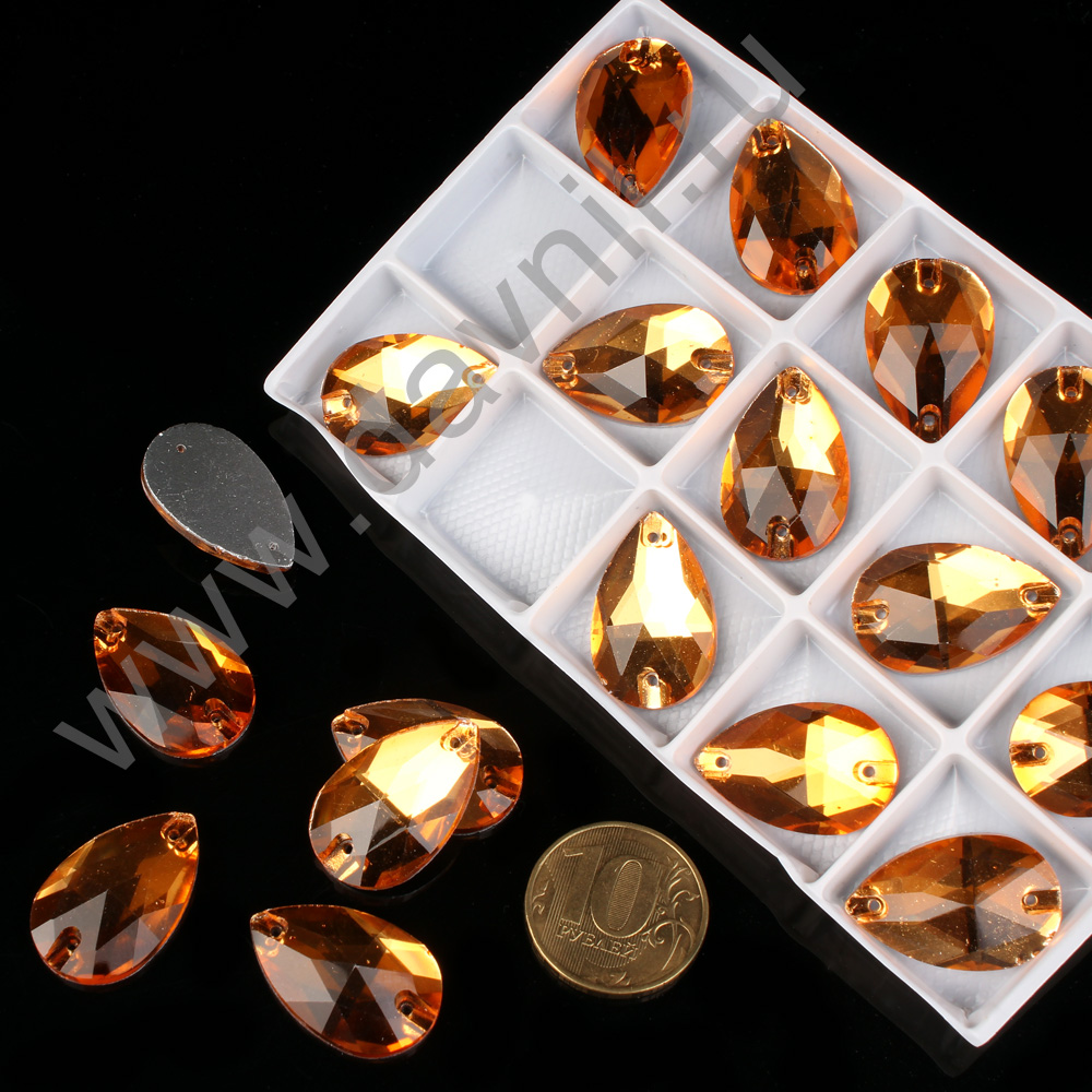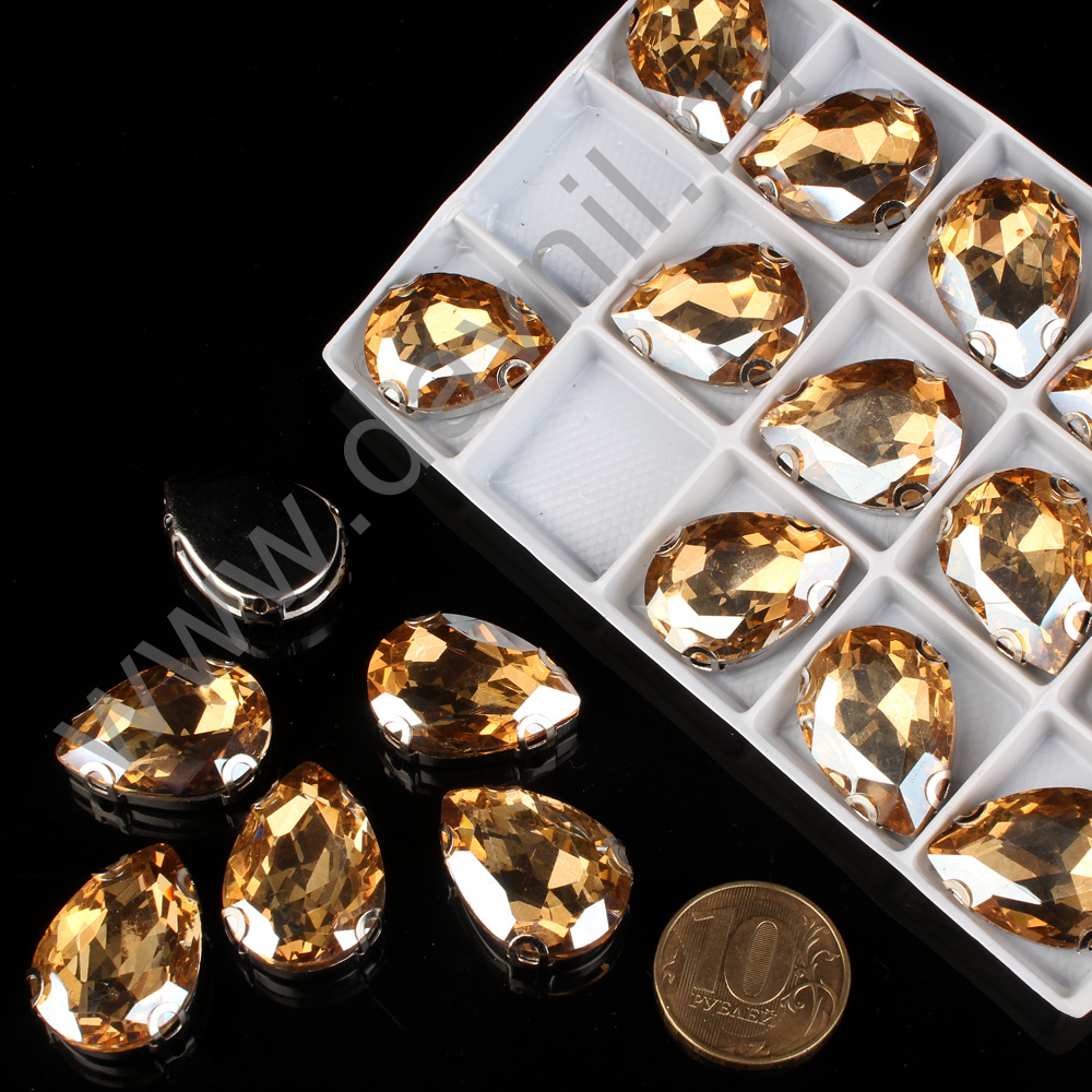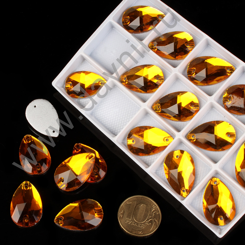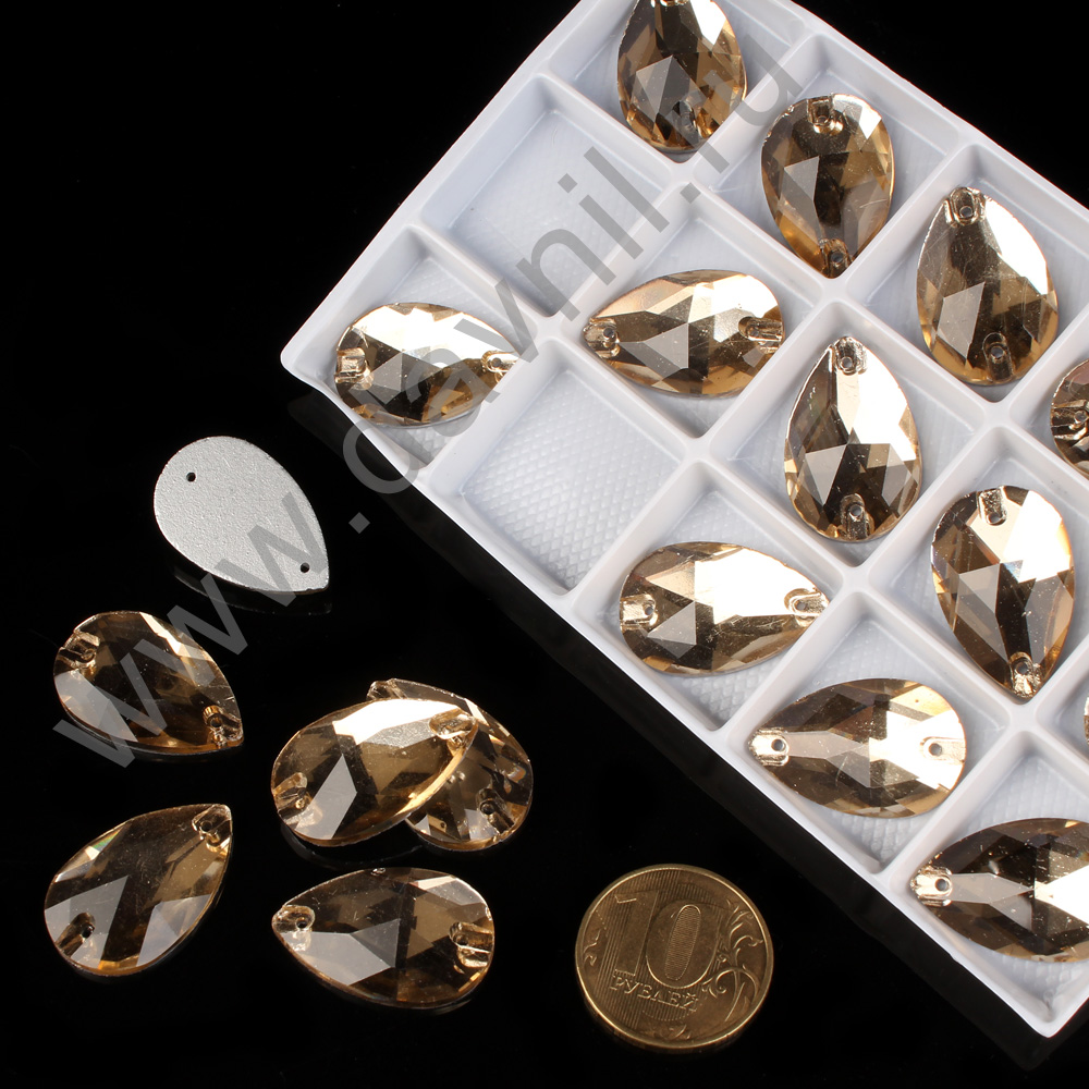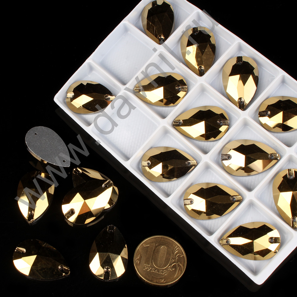 Стразы пришивные стекло капля 16*25 мм 15 шт золотые 28
