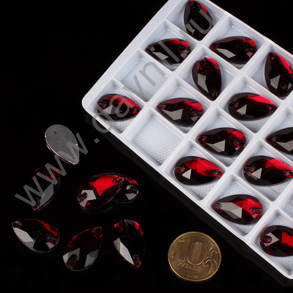 Стразы пришивные стекло капля 13*22 мм 20 шт бордовые 1