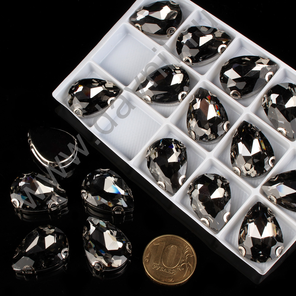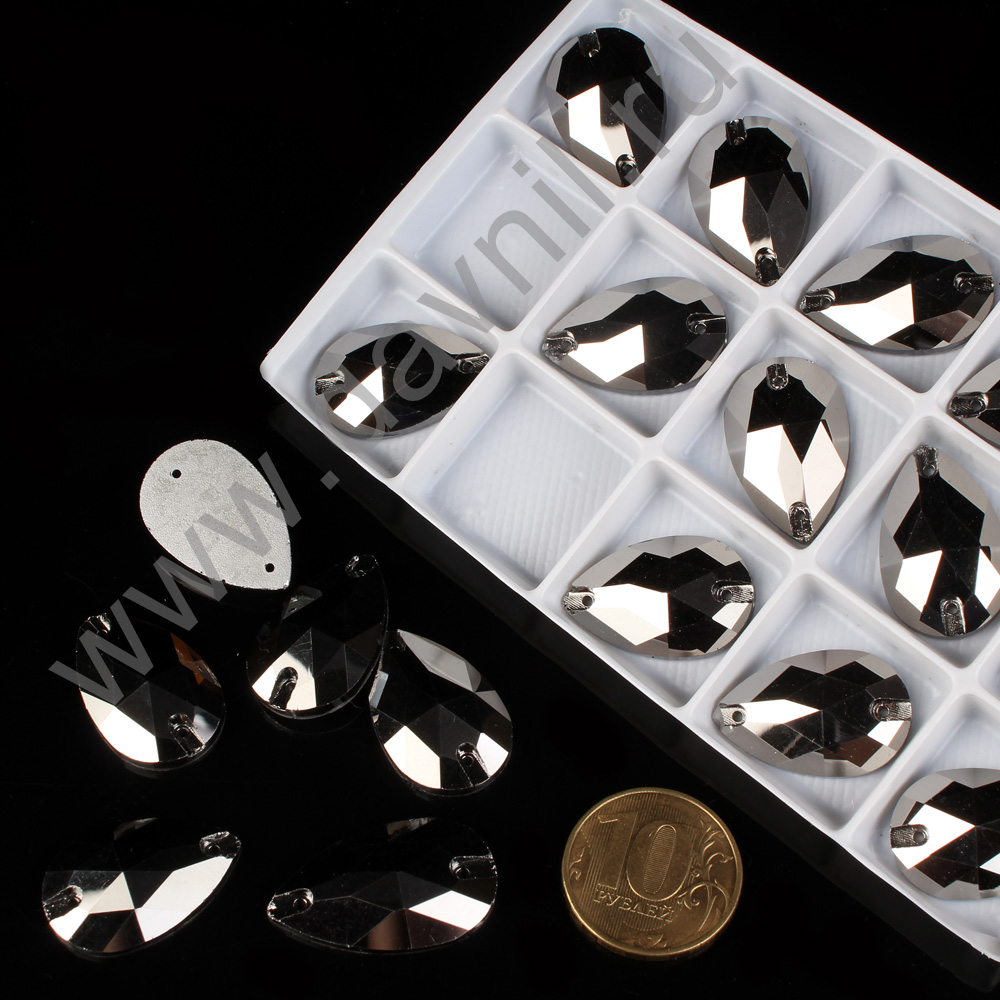 Стразы пришивные стекло капля 16*25 мм 15 шт серебро 29