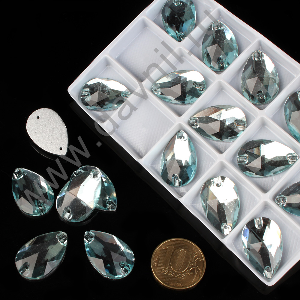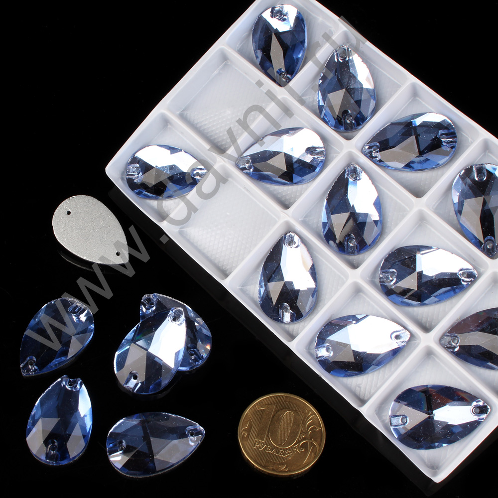 Стразы пришивные стекло капля 16*25 мм 15 шт светло-синие 21