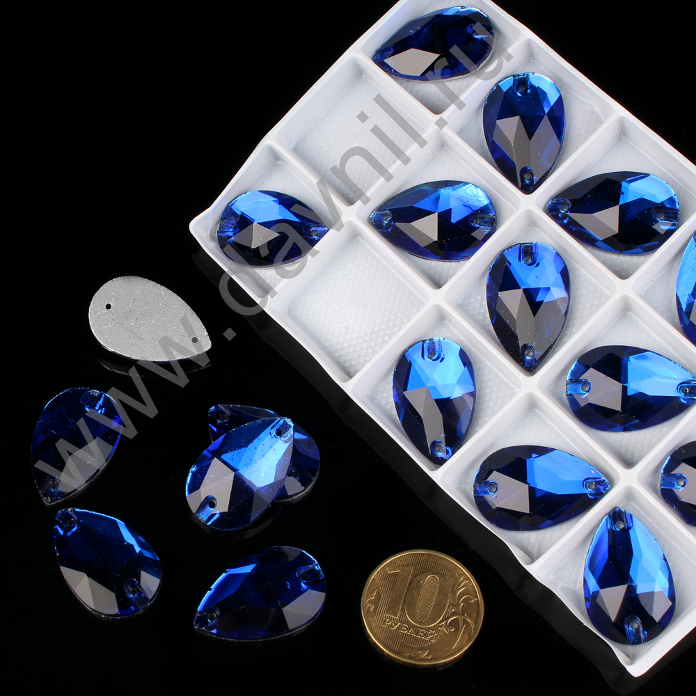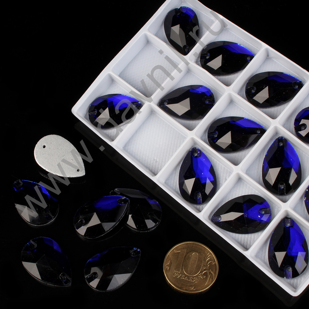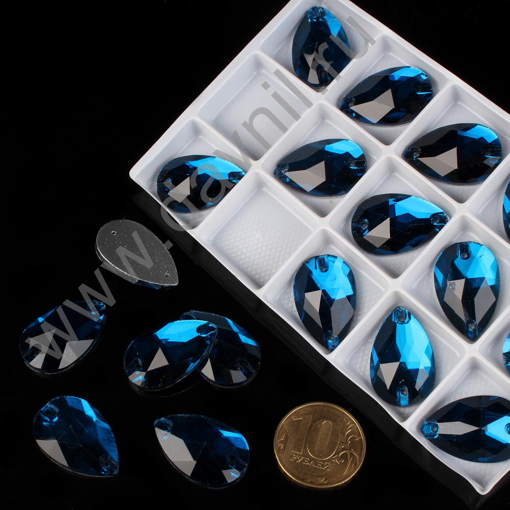 Стразы пришивные стекло капля 16*25 мм 15 шт синие 24