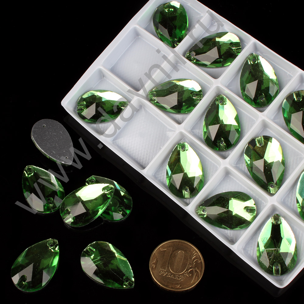 Стразы пришивные стекло капля 16*25 мм 15 шт зеленые 18