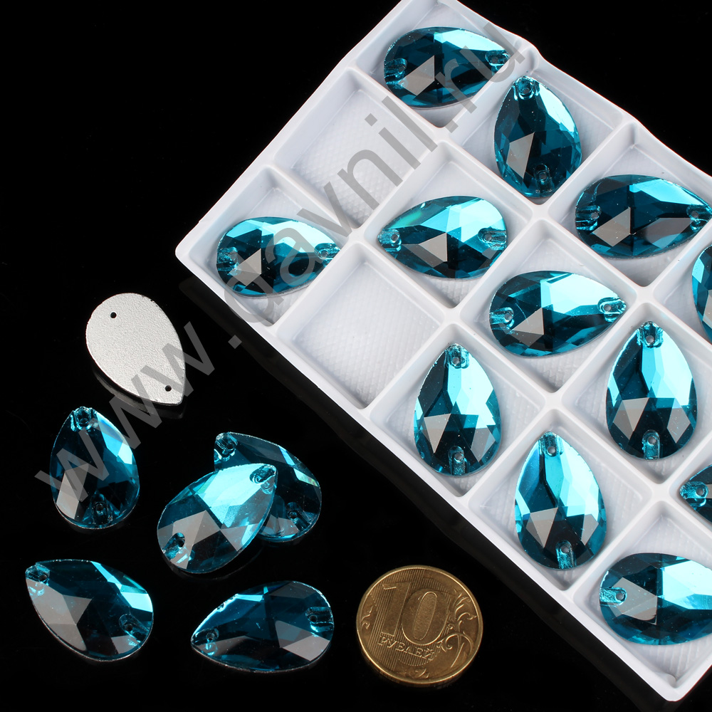 Стразы пришивные стекло капля 16*25 мм 15 шт голубой 20