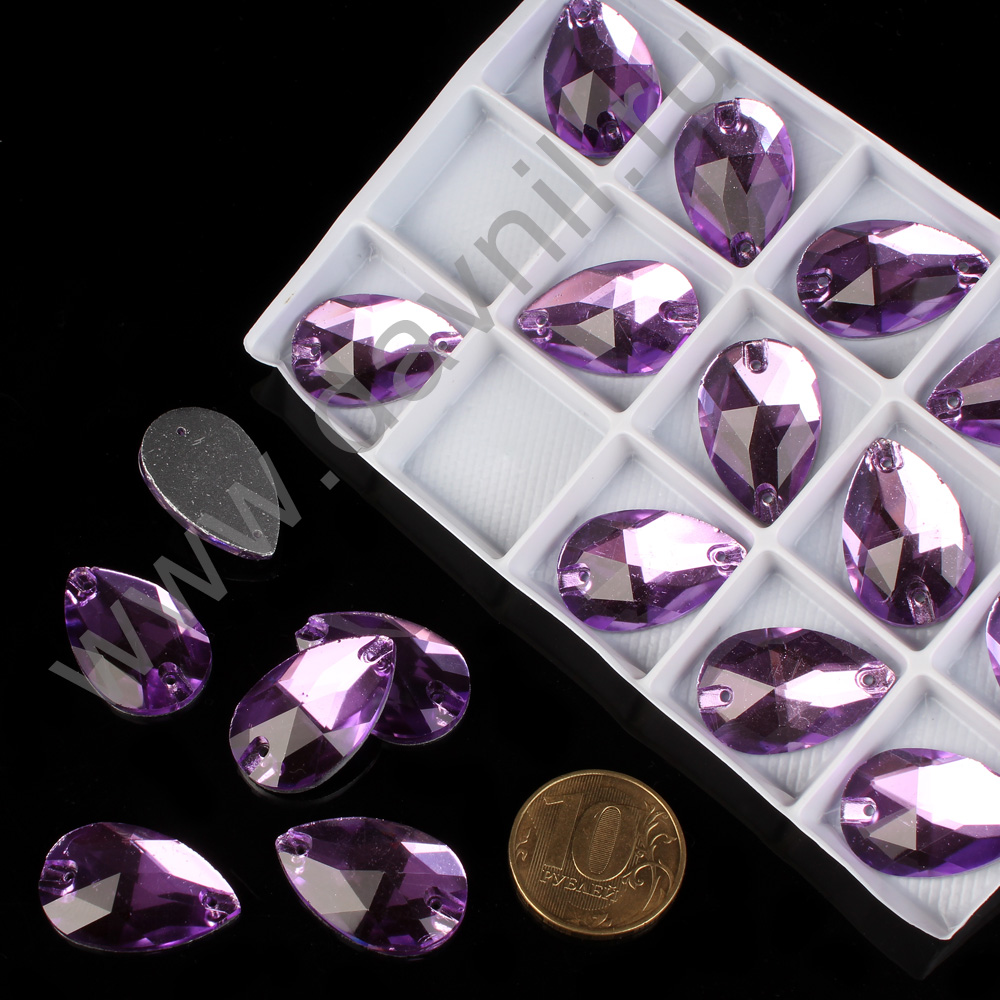 Стразы пришивные стекло капля 16*25 мм 15 шт сиреневые 14