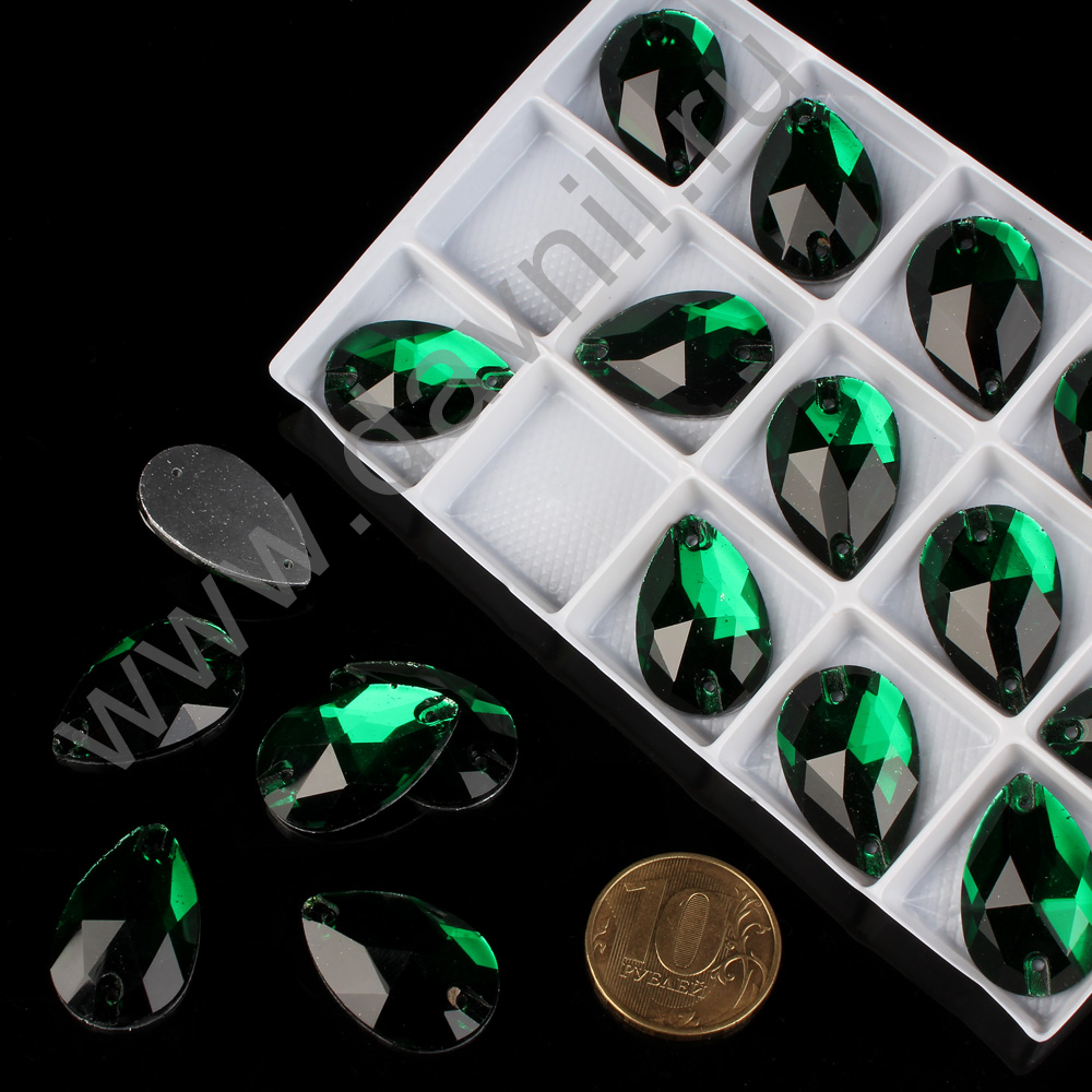 Стразы пришивные стекло капля 16*25 мм 15 шт изумрудные 19