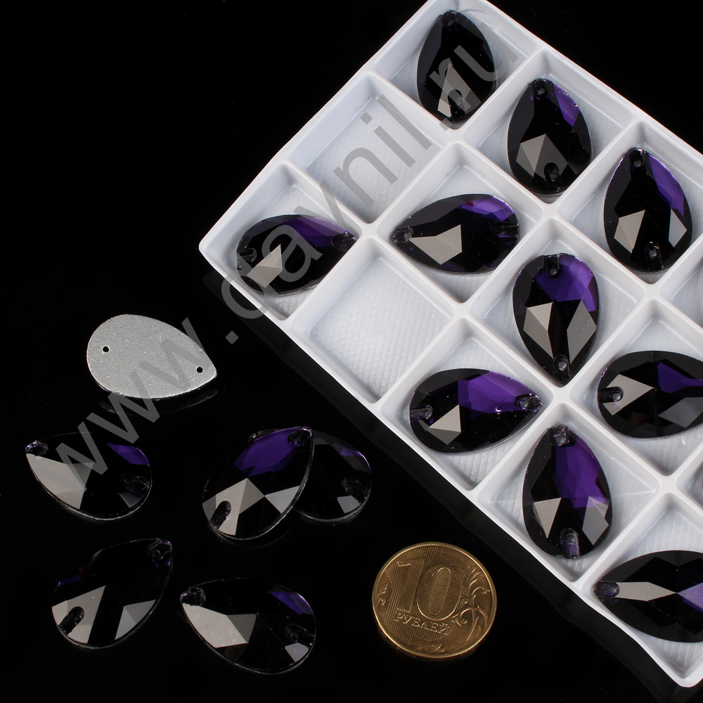 Стразы пришивные стекло капля 16*25 мм 15 шт фиолетовые 16